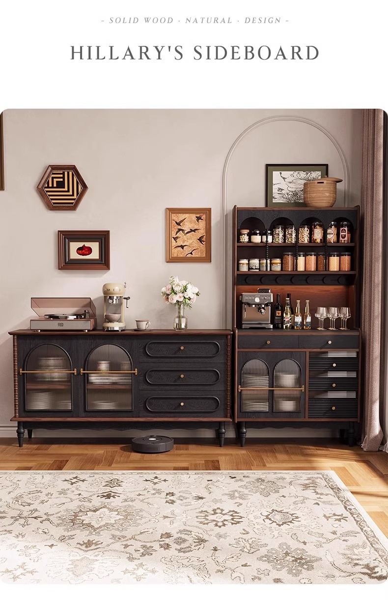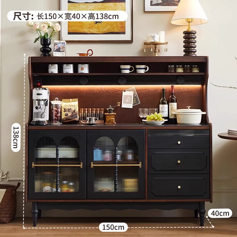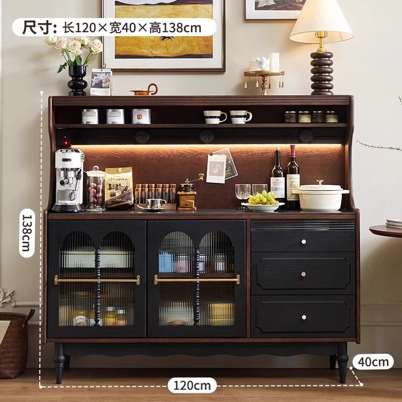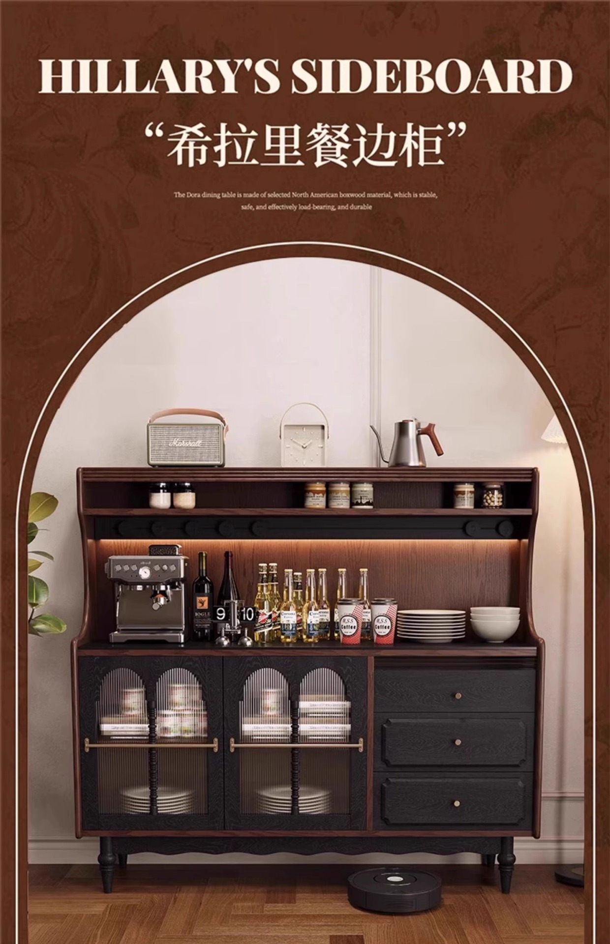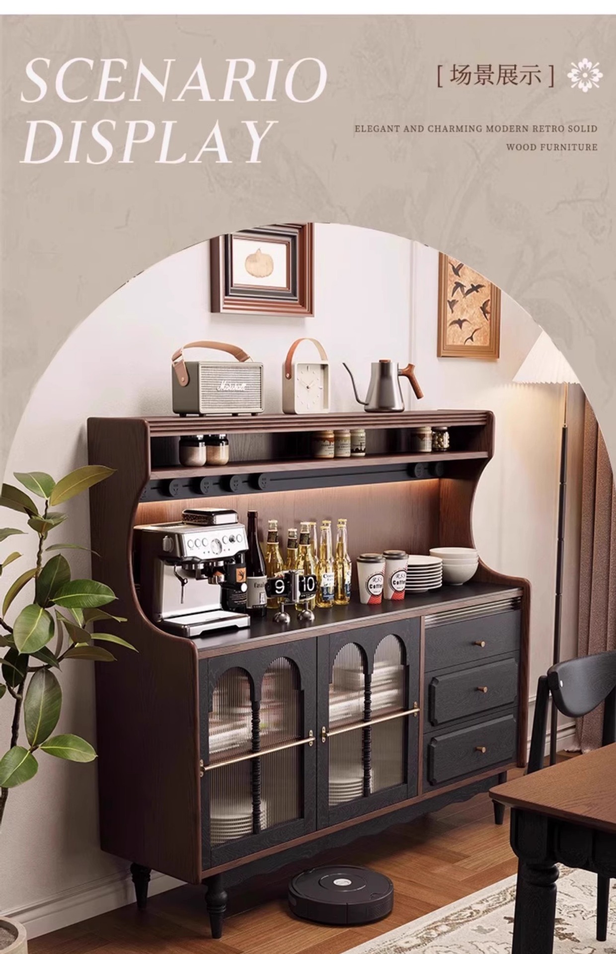 프렌치 레트로 원목 찬장, 가벼운 럭셔리, 고급 벽면 수납, 일체형 캐비닛, 소형 거실 찬장
