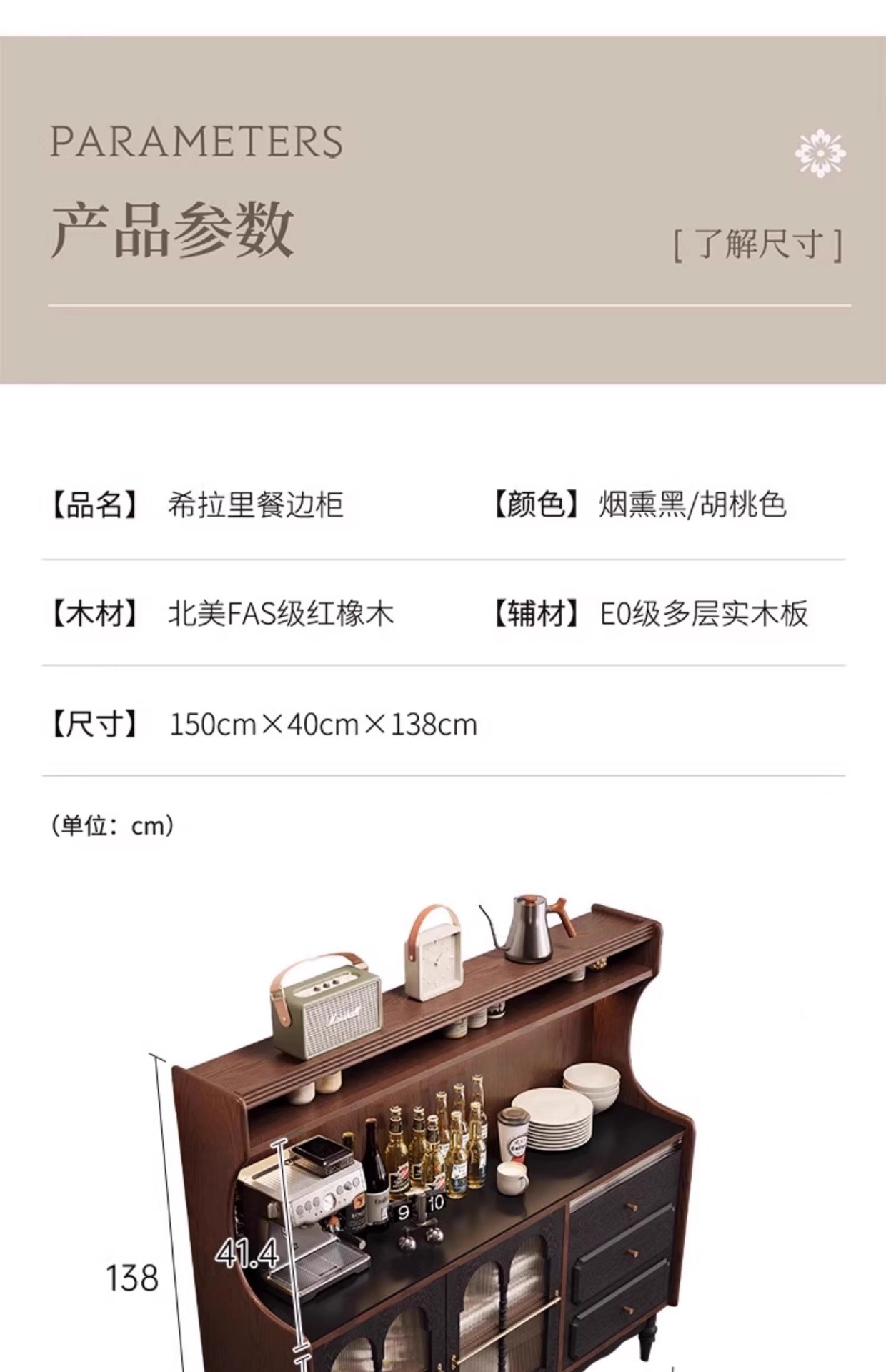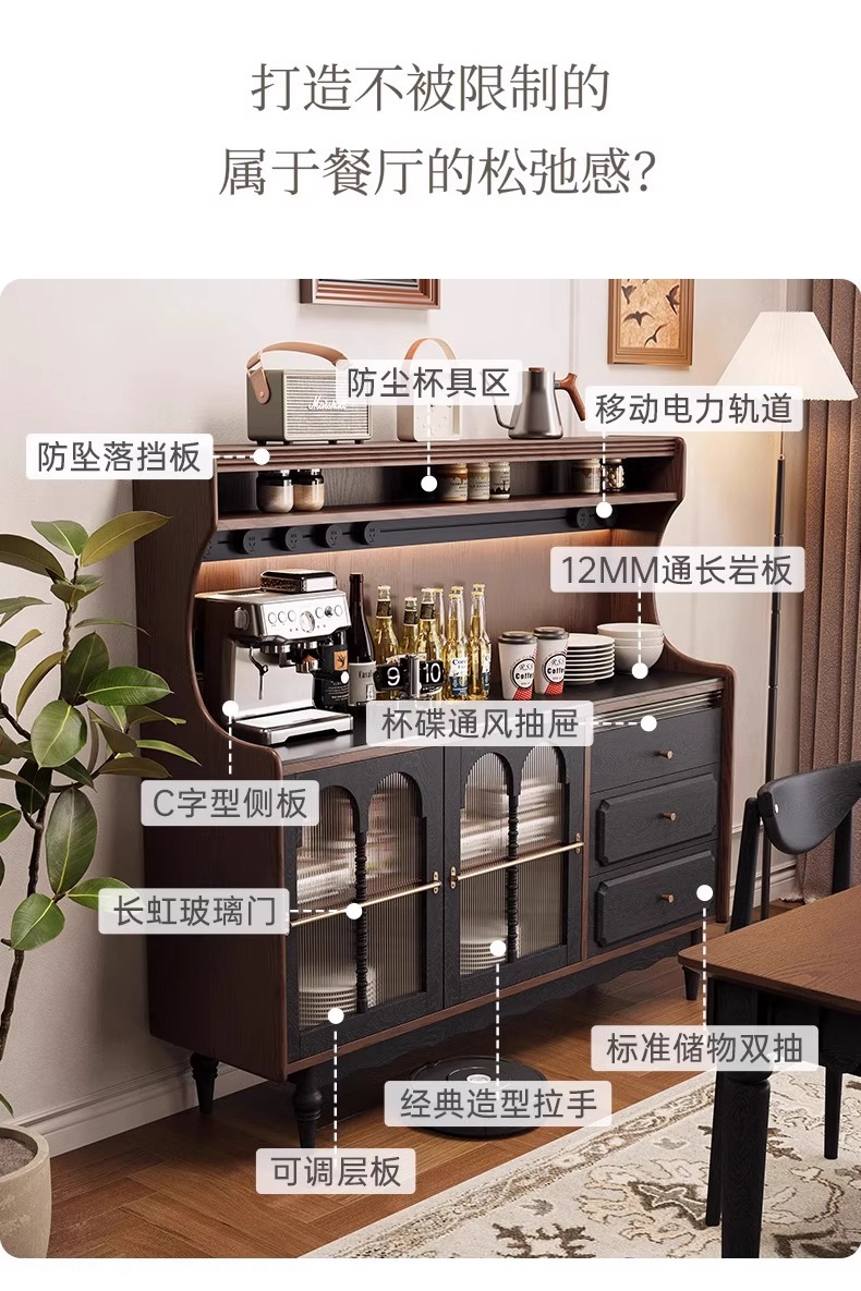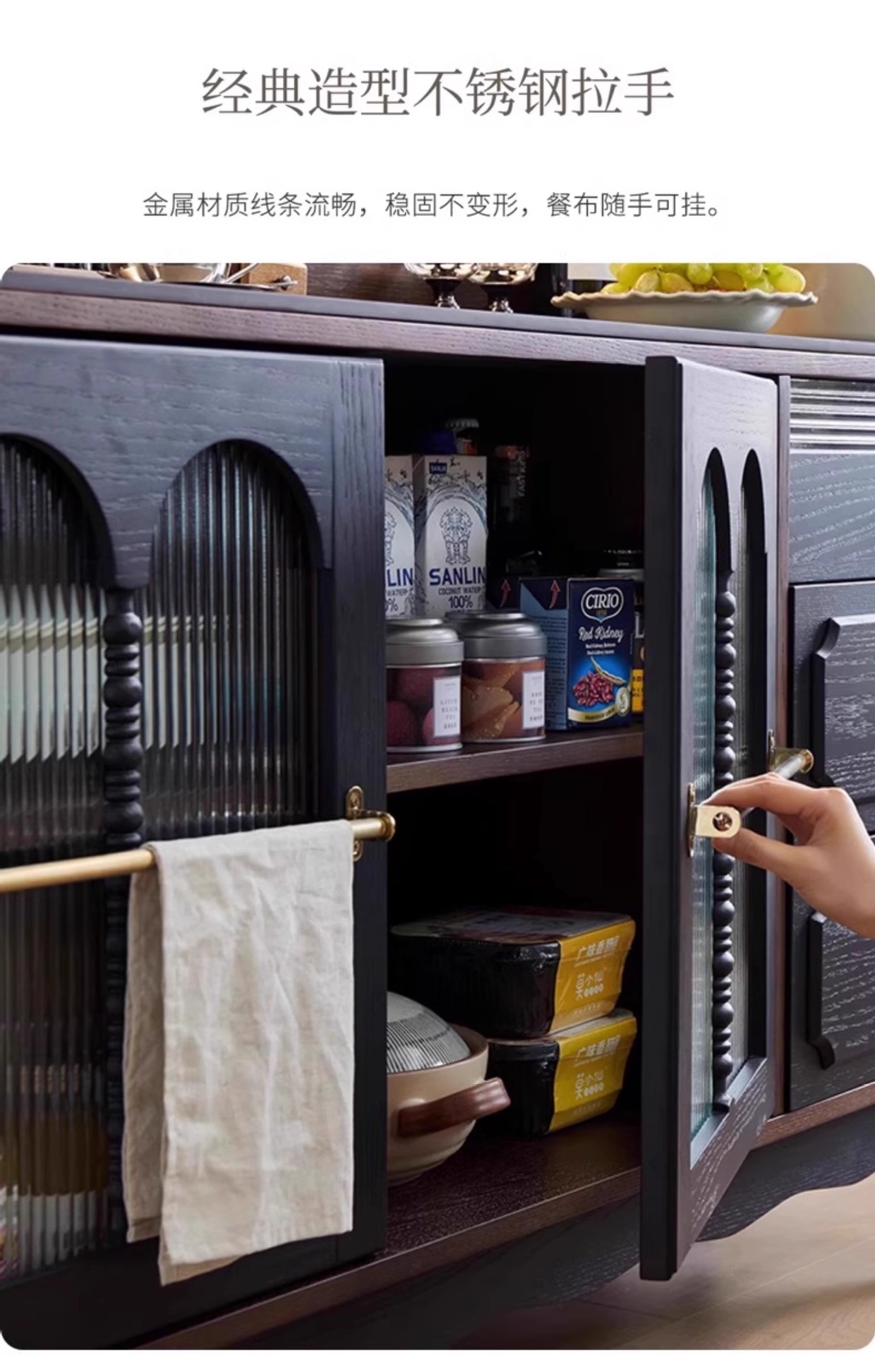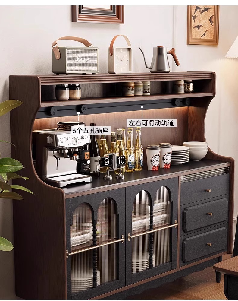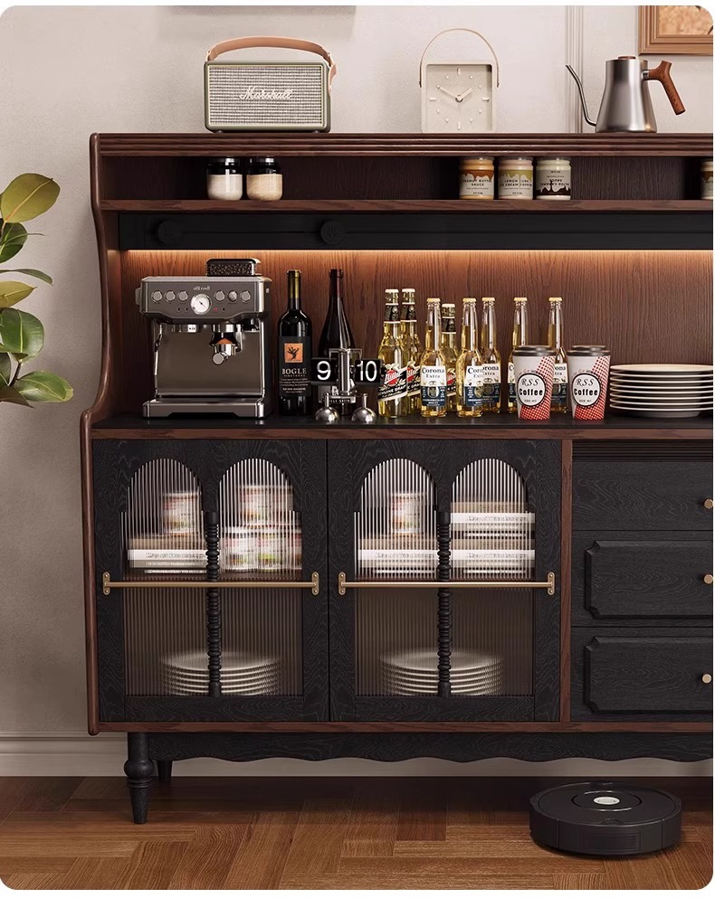 프렌치 레트로 원목 찬장, 가벼운 럭셔리, 고급 벽면 수납, 일체형 캐비닛, 소형 거실 찬장스토어 가기