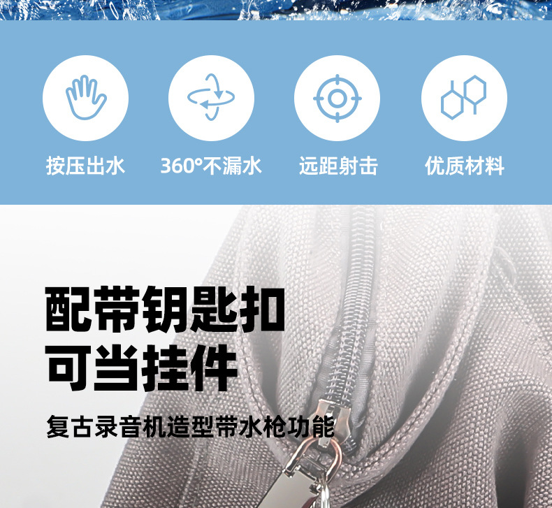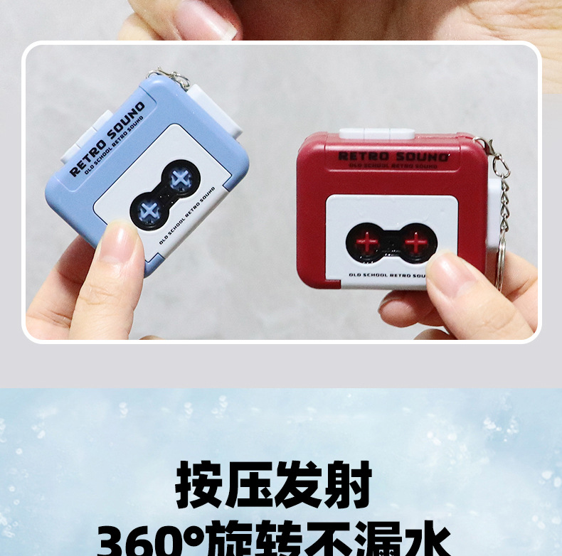 새로운 복고풍 레코더 물총 키 체인 장난감 프레스 물 스프레이 어린이 여름 물 미니 펜던트 장식품