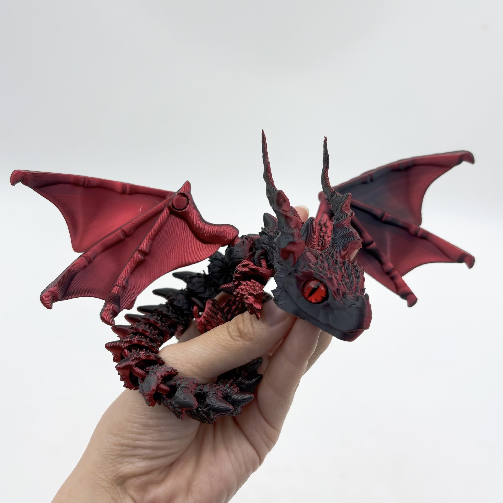 3D 인쇄 큰 뿔 비늘 드래곤 손 모델 장식품 어린이 장난감 시뮬레이션 안구 날개 관절 이동식