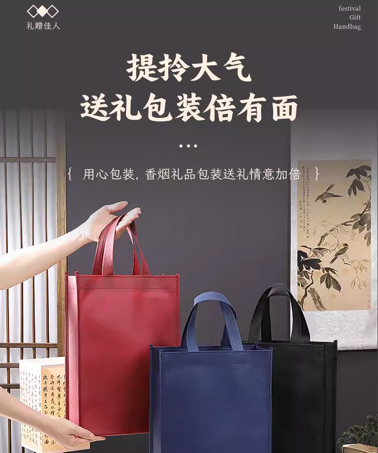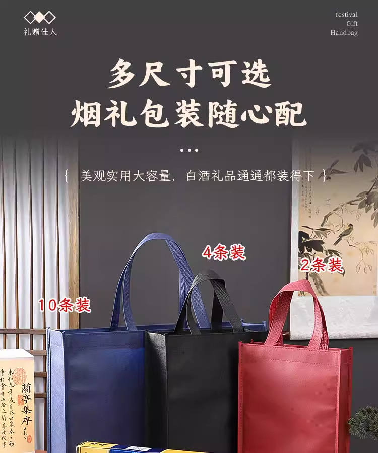 2 담배 가방, 명절 축하 선물 가방, 담배 포장 가방, 두꺼운 부직포 핸드백, 차 선물 가방스토어 가기