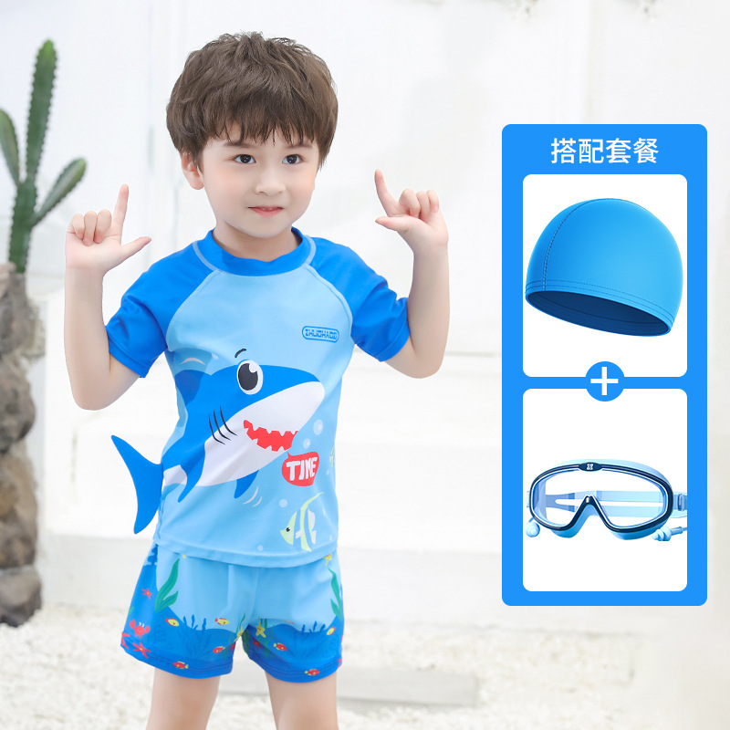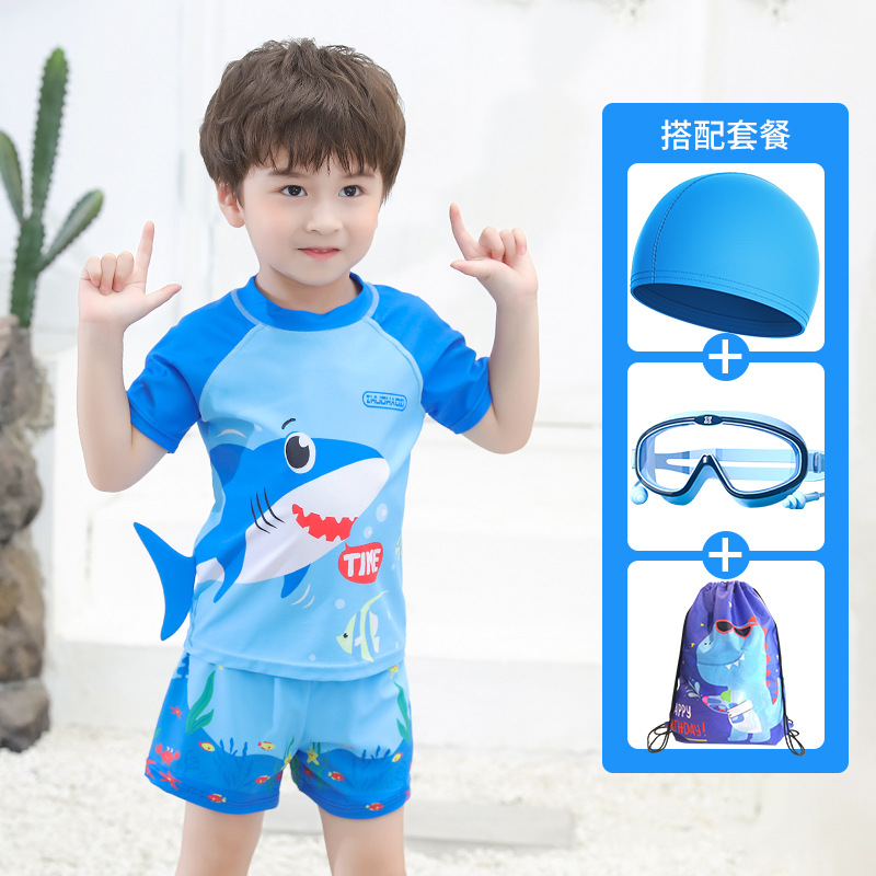 • Blue Little Shark [동일한 수영모 + 대형 프레임 수영 고글 + 보관 가방 보내기]