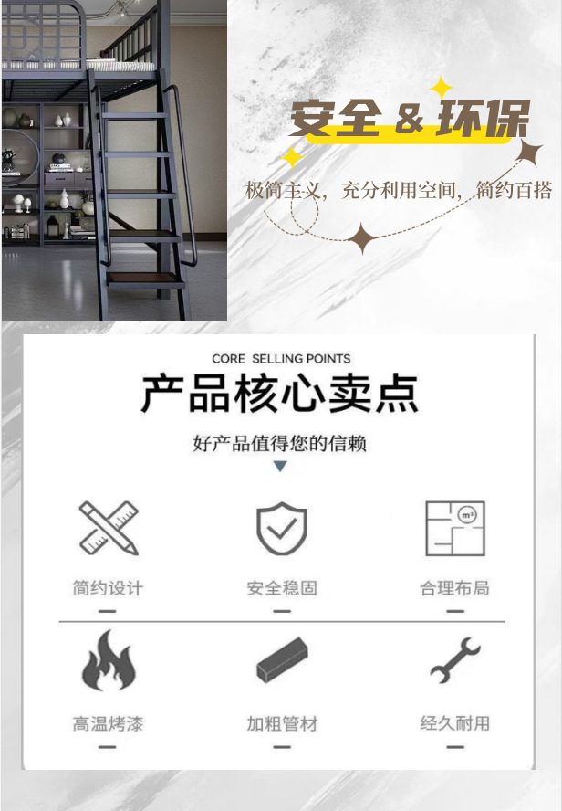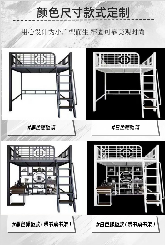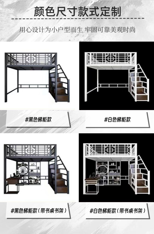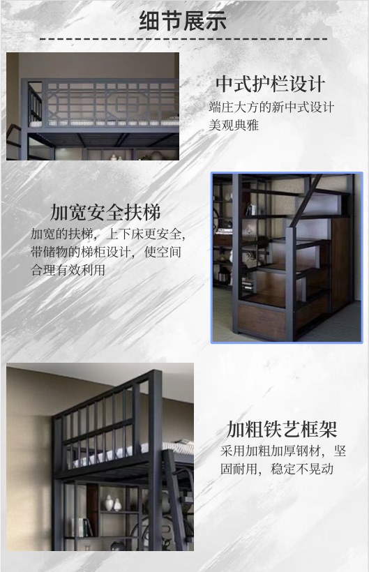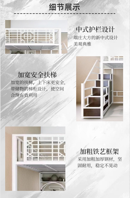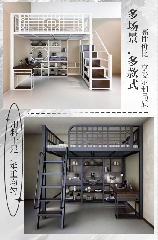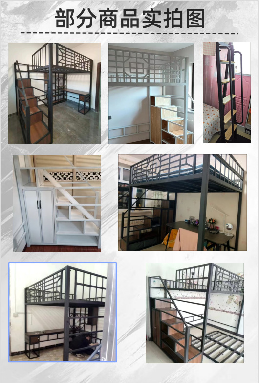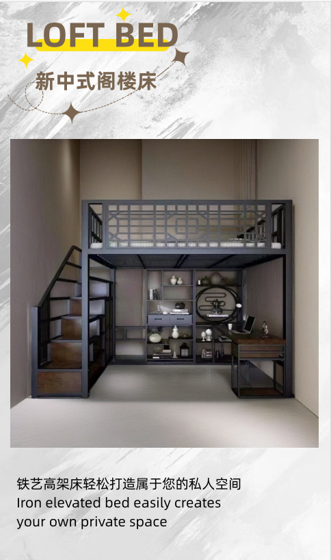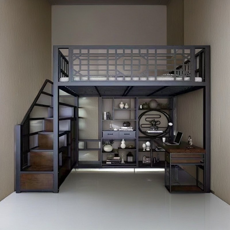 새로운 중국 스타일 철제 침대, 고대 스타일 아파트 철제 프레임 침대, 로프트 스타일의 높은 침대 시트, 상층 공간 절약형 소형 아파트 2층스토어 가기