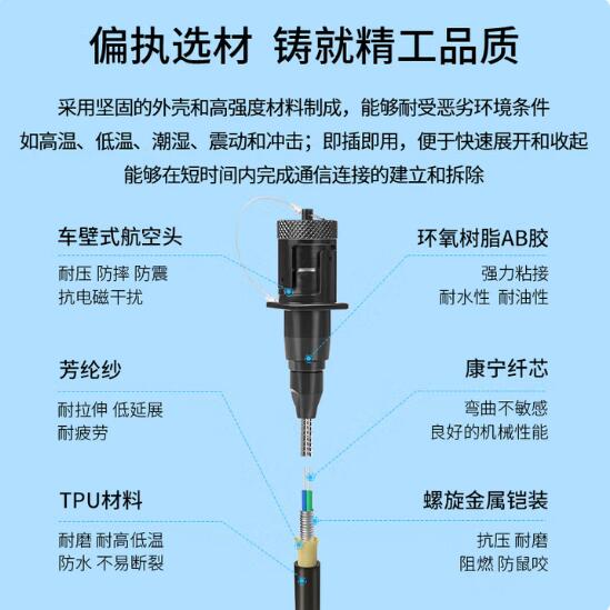 Boyang 단일 모드 2 코어 실외 TPU 필드 광섬유 케이블 BY-2S-YKSC10M 자동차 벽 항공 커넥터 암-SC