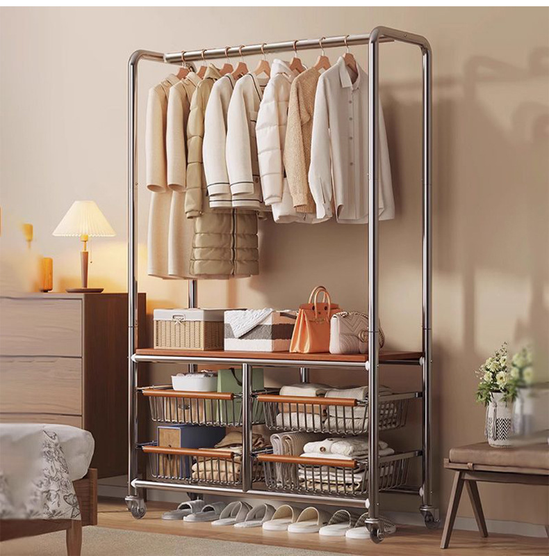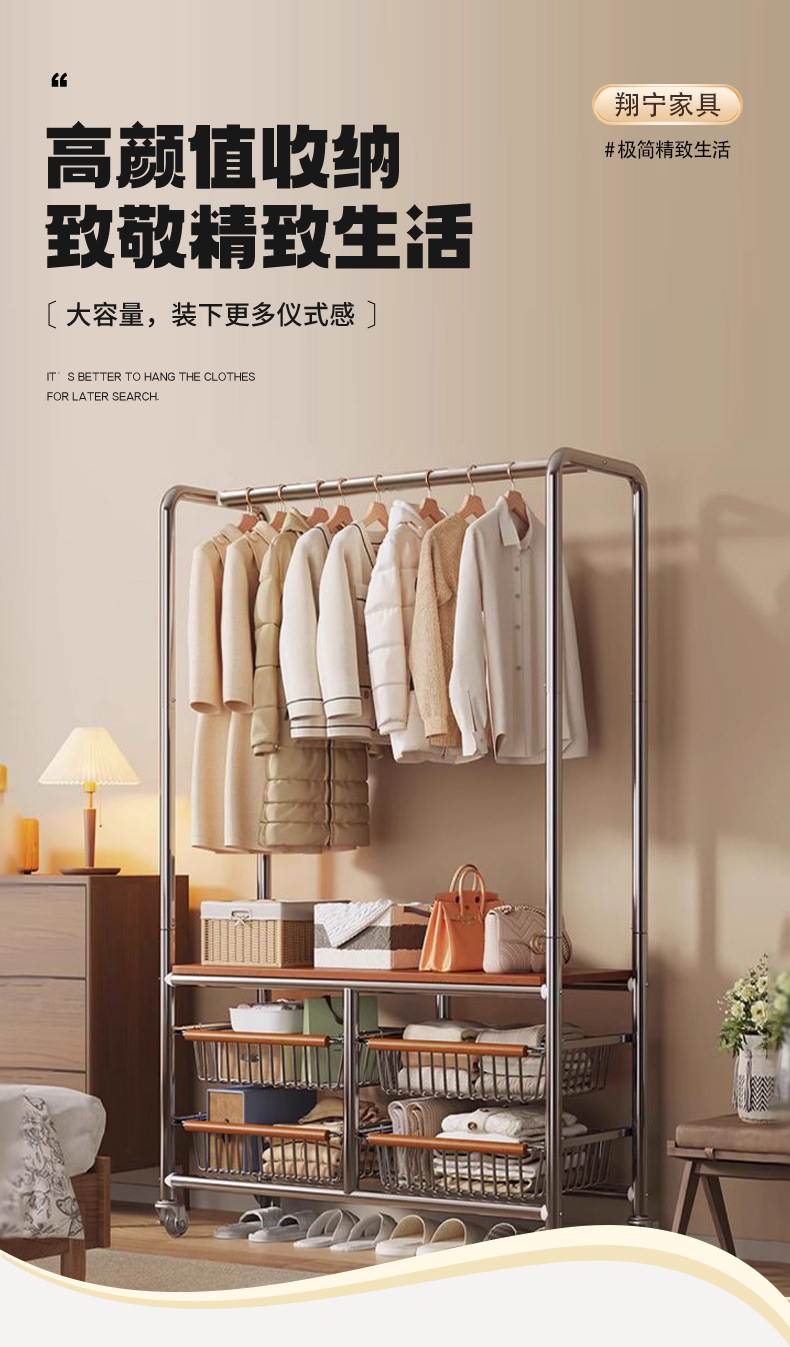 중세 스타일 코트 랙, 이동식 옷걸이, 바닥 스탠딩 침실 코트 랙, 거실 옷걸이, 인터넷 연예인 보관함스토어 가기