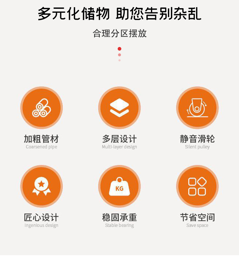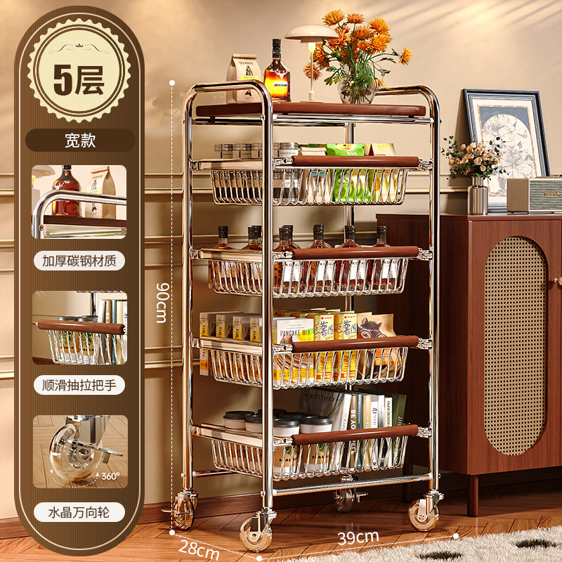 • 5단, 바구니 4개, 보드 1개 [잡화수납 침대 옆 트롤리] [전기도금강판, 녹슬지 않고 내구성이 좋음]