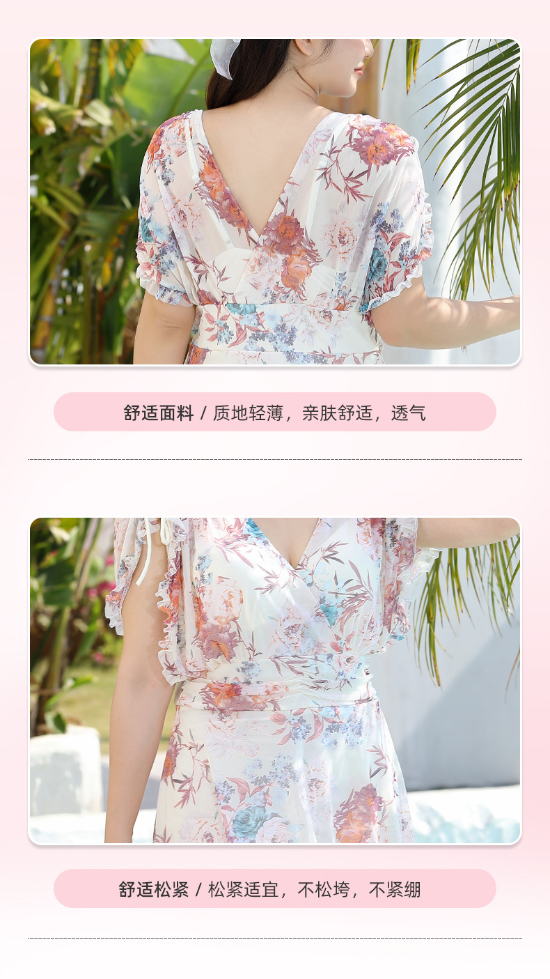 러플 꽃무늬 플러스 사이즈 스커트 수영복 더블 레이어 튤 반투명 온천 의류 여름 여성 의류스토어 가기