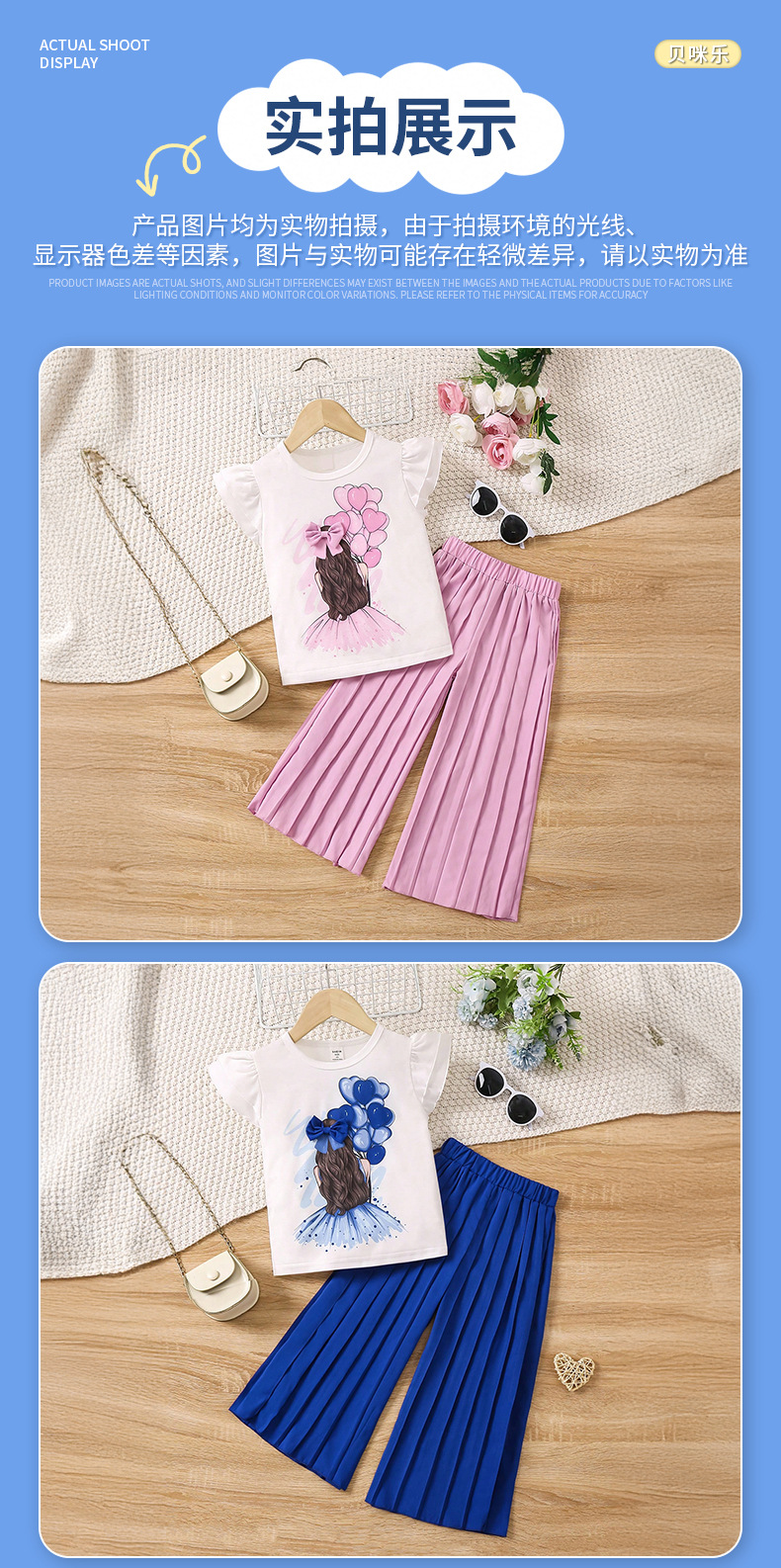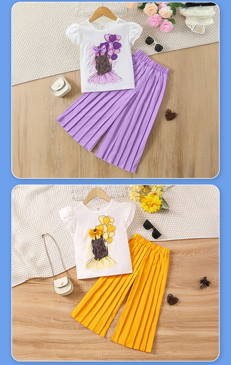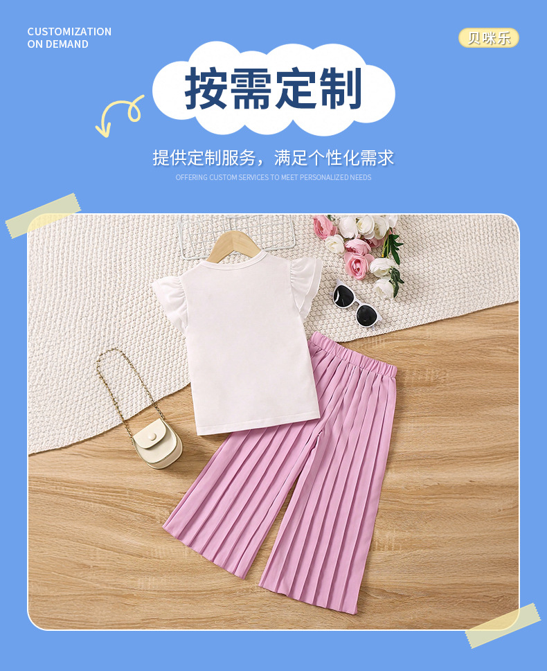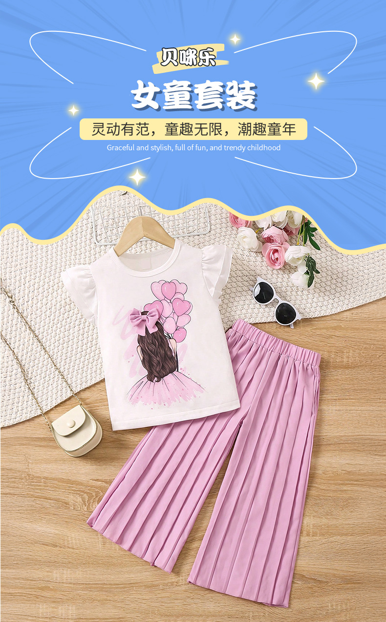 2025년 신상 여름 유럽풍 민소매 흰색 플라잉 슬리브 패션 상의와 긴바지 세트, 유아 및 어린 소녀들을 위한 크로스보더 세트스토어 가기