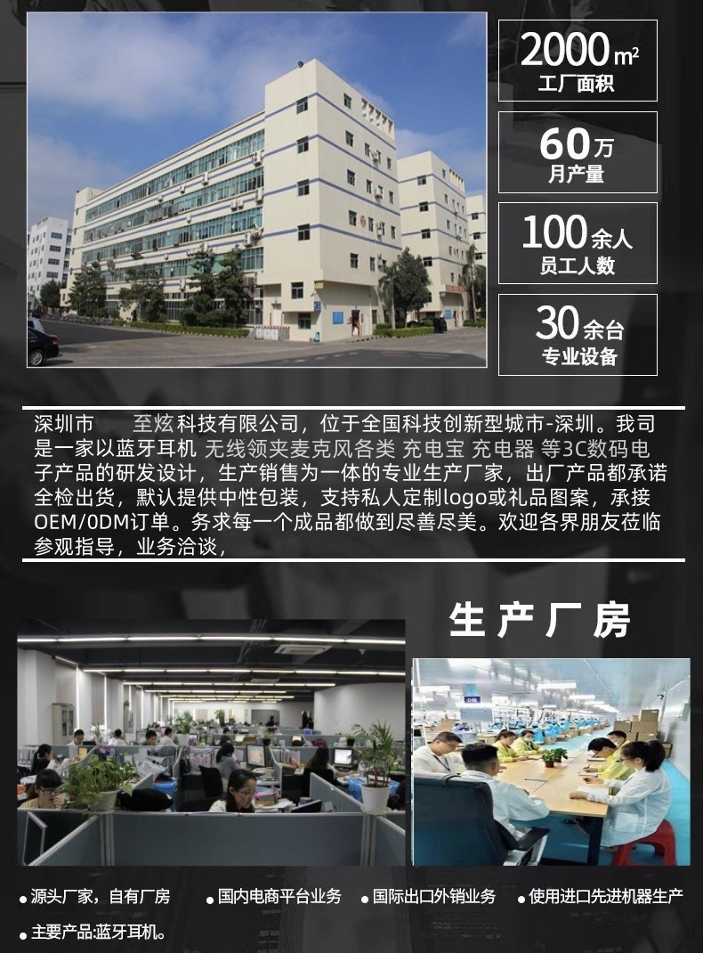 实力超级工厂专注高端新款无线领夹麦克风,蓝牙耳机,无线充电宝等3C电子数码产品的生产,销售一体式发展