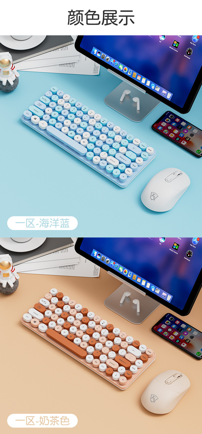 • [무선존2] 밀크티 컬러 2.4G 무선 + 블루투스 듀얼 모드 키보드 및 마우스