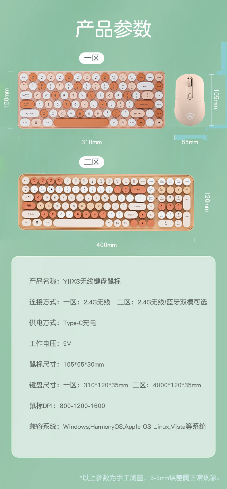 • [무선 구역 2] 그래스 그린 2.4G 무선 + 블루투스 듀얼 모드 키보드 및 마우스