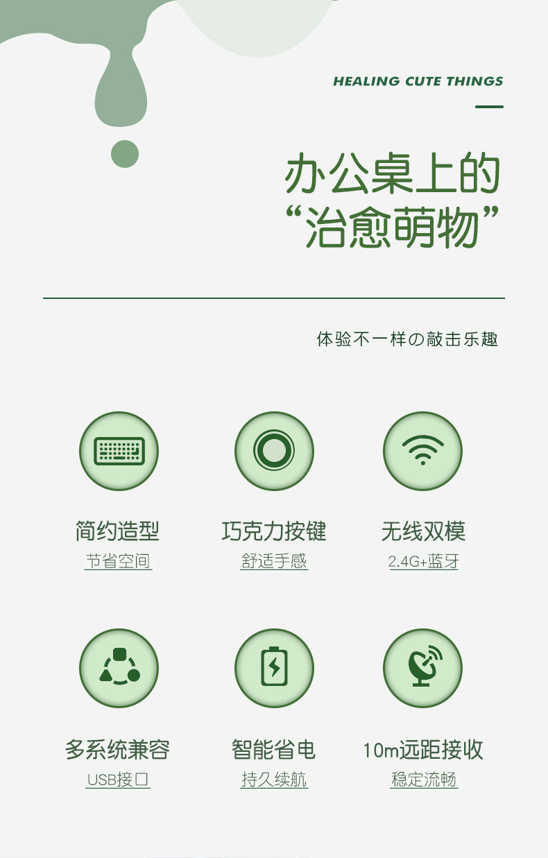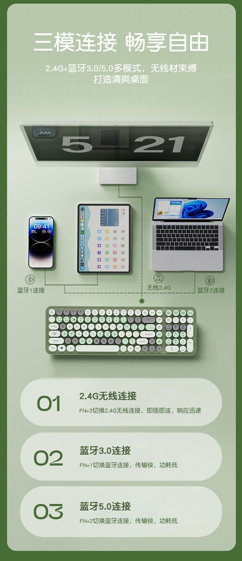 • [무선 구역 2] 그래스 그린 2.4G 무선 + 블루투스 듀얼 모드 싱글 키보드