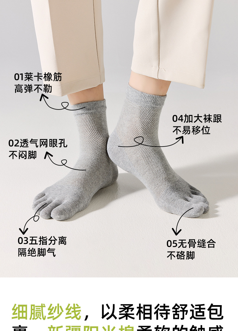 남성용 다섯 손가락 양말 여름 얇은 순면 메쉬 통기성 땀 흡수 10A 등급 항균 및 탈취 발 발가락 양말스토어 가기