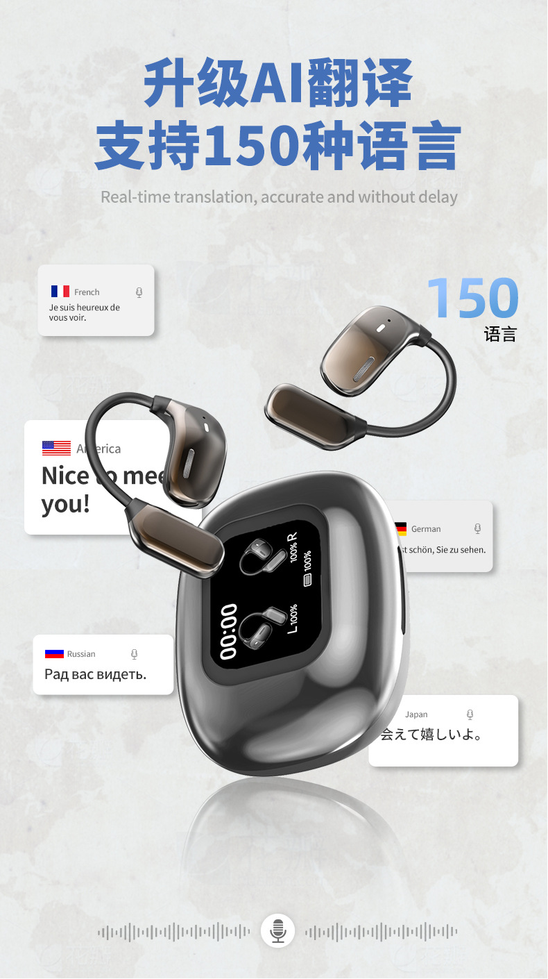 JM16 컬러 스크린 번역 블루투스 이어폰 AI 스마트 무선 인이어 아닌 디자인 긴 배터리 수명 저음 스포츠 러닝 AI 번역스토어 가기