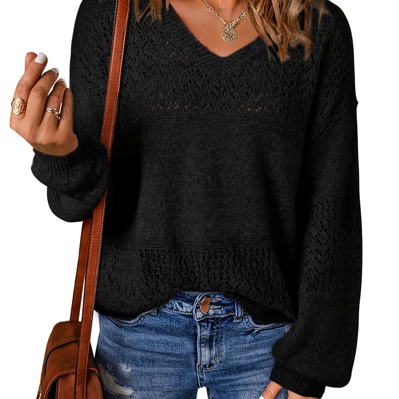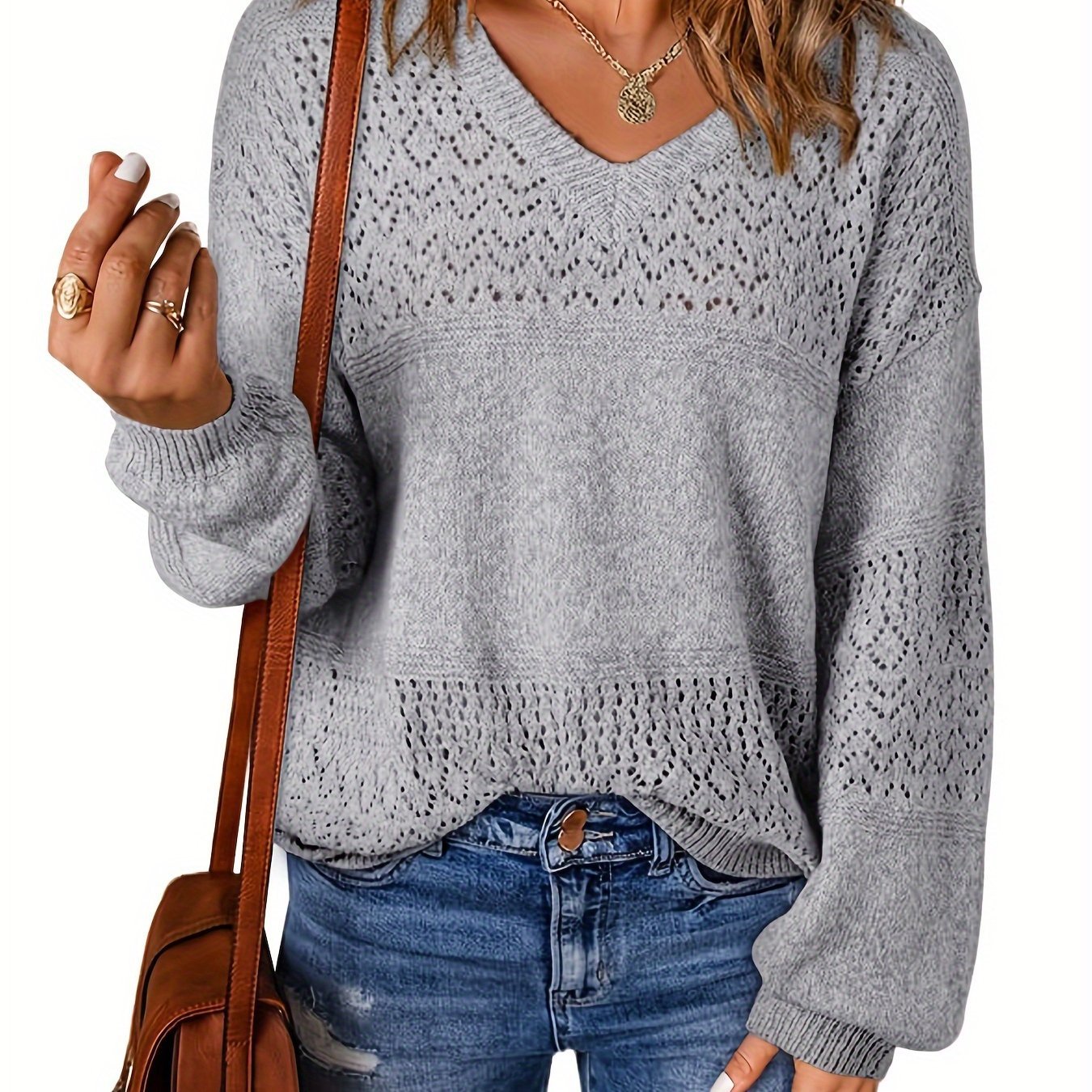 V 넥 니트 스웨터 캐주얼 긴 소매 크로스보더 배송스토어 가기