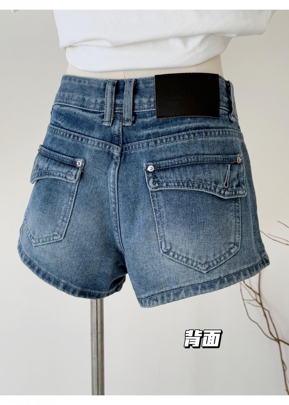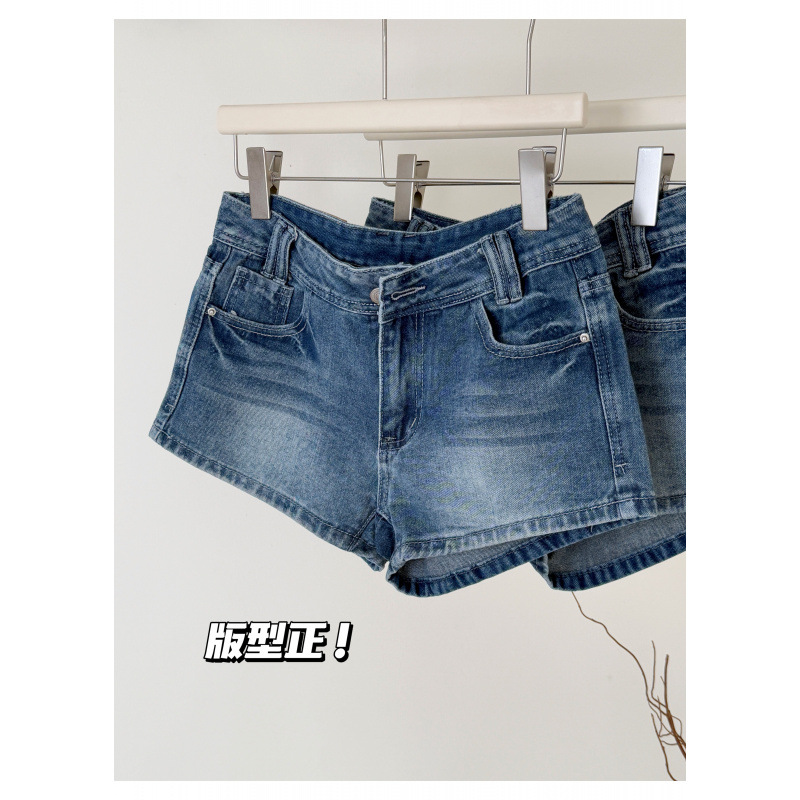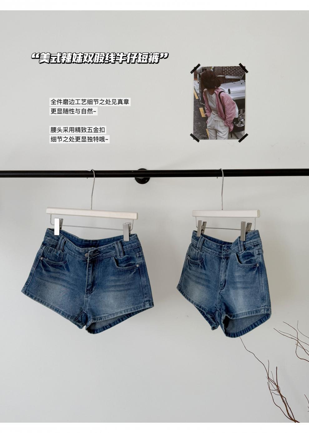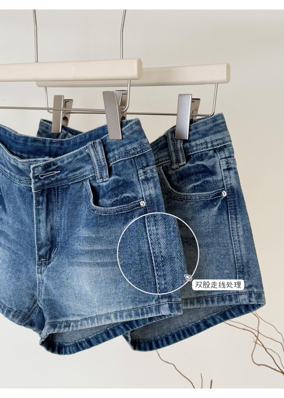 여름 핫걸을 위한 더블 스트랜드 두꺼운 라인 레트로 데님 반바지 아메리칸 슬림 블루 디스트레스드 팬츠스토어 가기