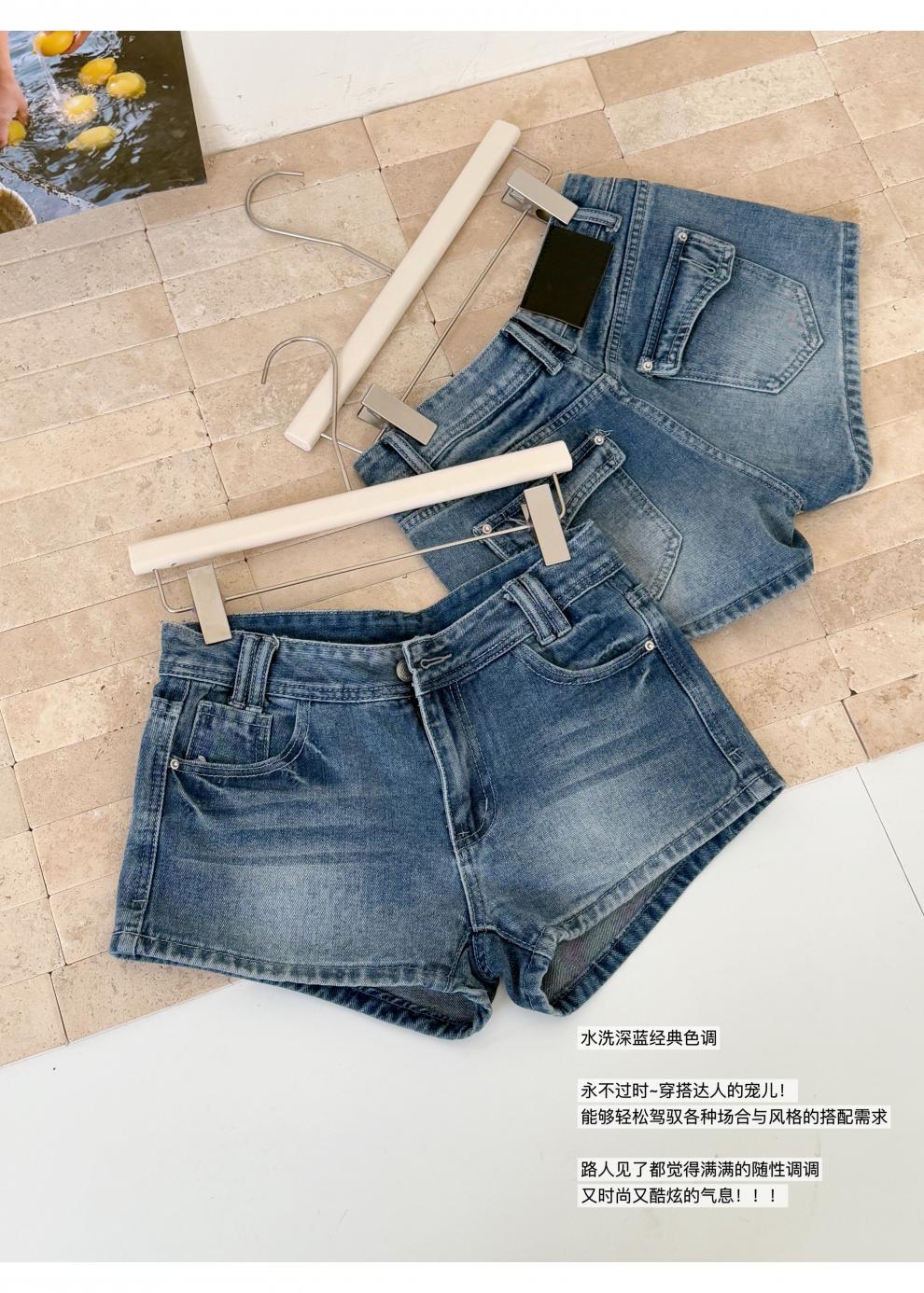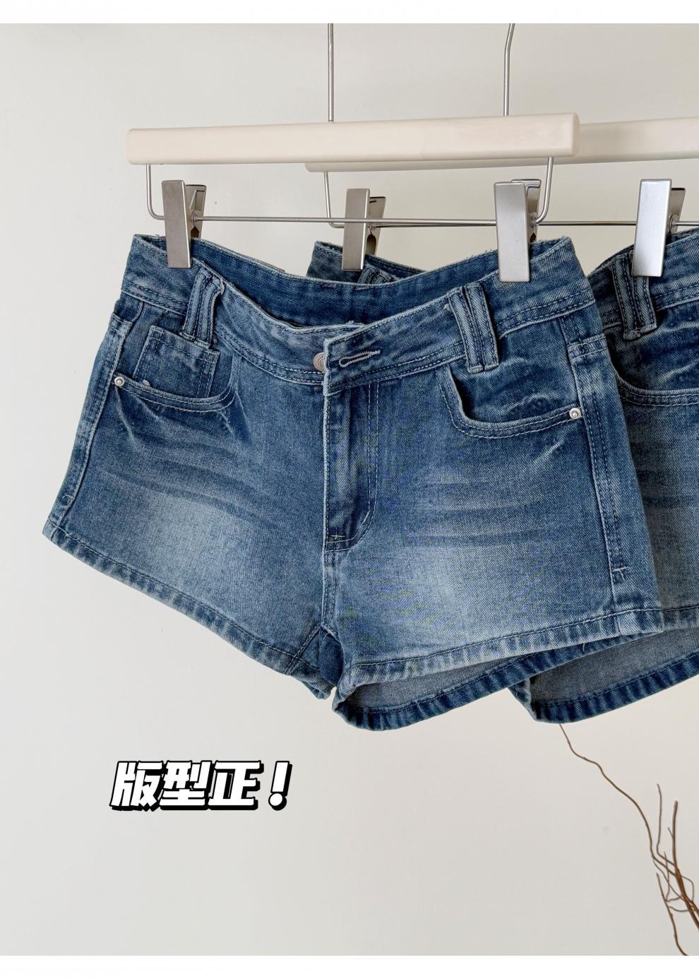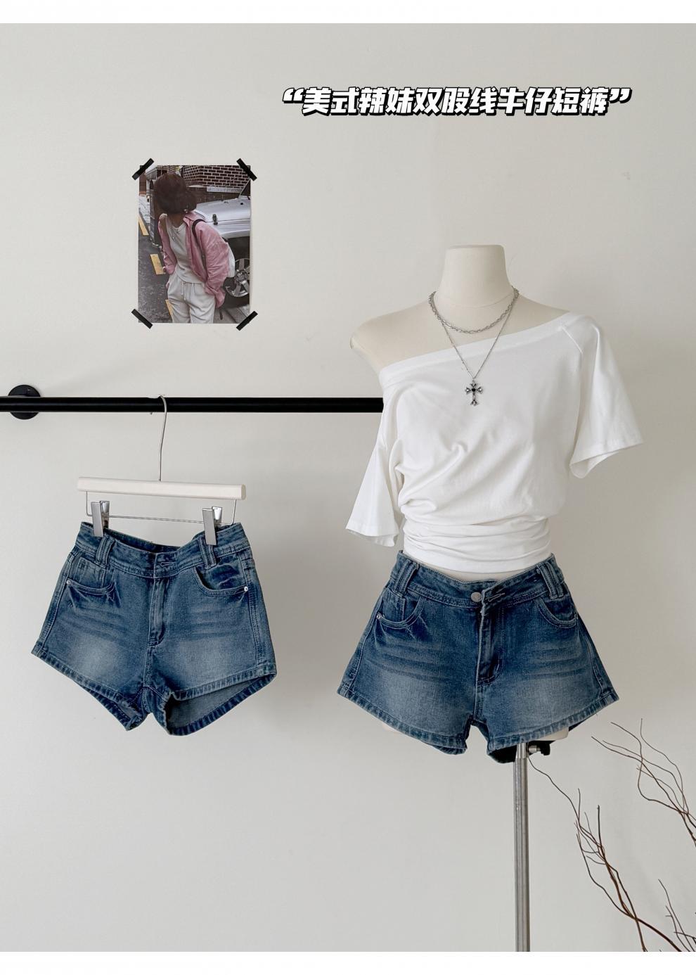 여름 핫걸을 위한 더블 스트랜드 두꺼운 라인 레트로 데님 반바지 아메리칸 슬림 블루 디스트레스드 팬츠스토어 가기