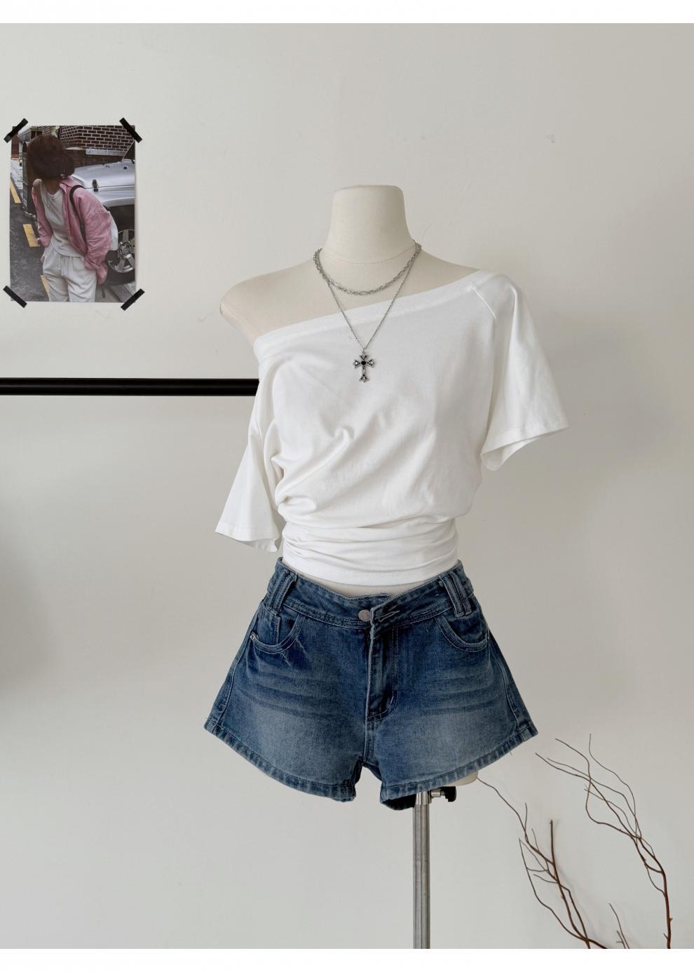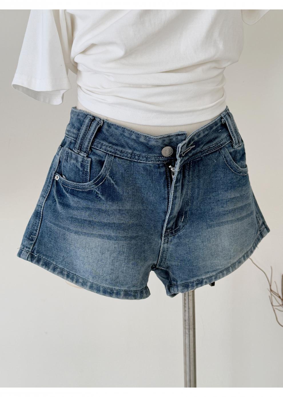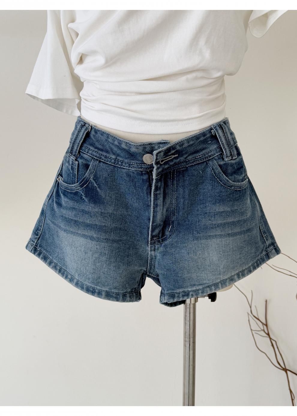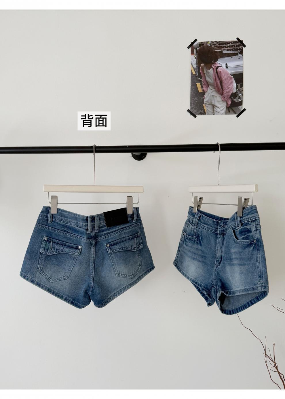 여름 핫걸을 위한 더블 스트랜드 두꺼운 라인 레트로 데님 반바지 아메리칸 슬림 블루 디스트레스드 팬츠스토어 가기