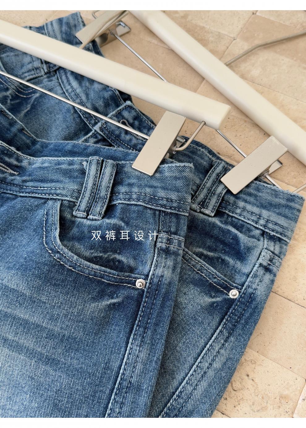 여름 핫걸을 위한 더블 스트랜드 두꺼운 라인 레트로 데님 반바지 아메리칸 슬림 블루 디스트레스드 팬츠