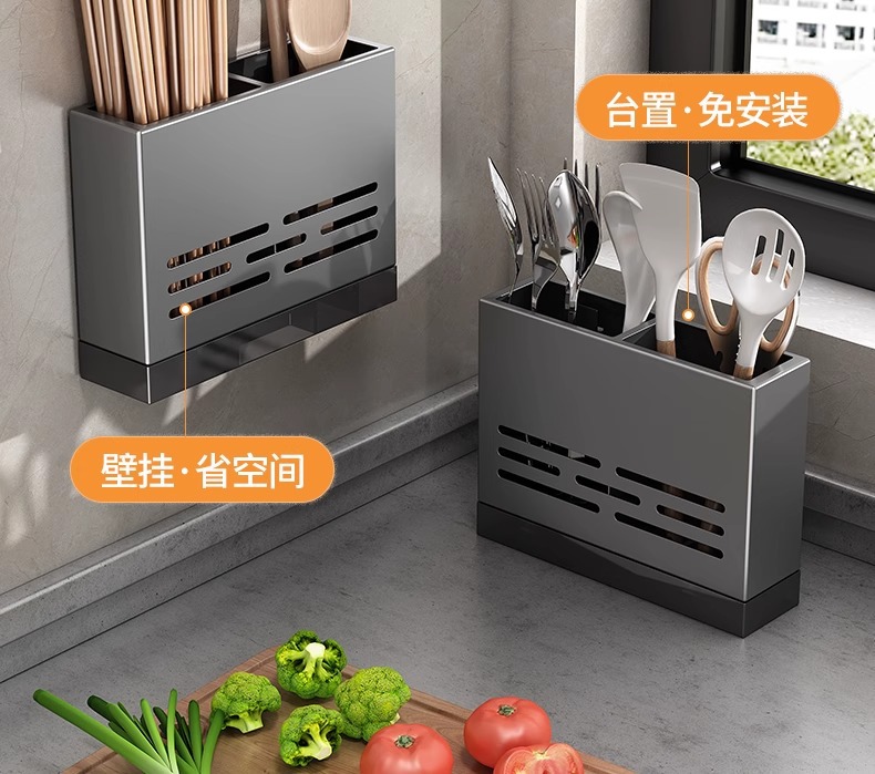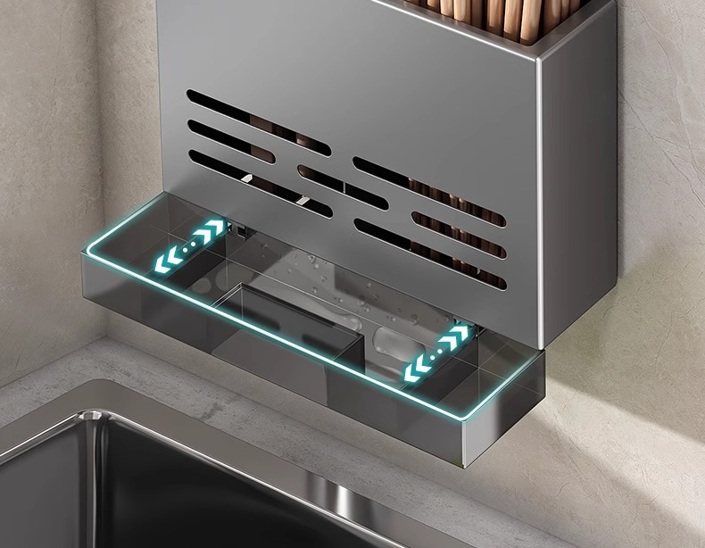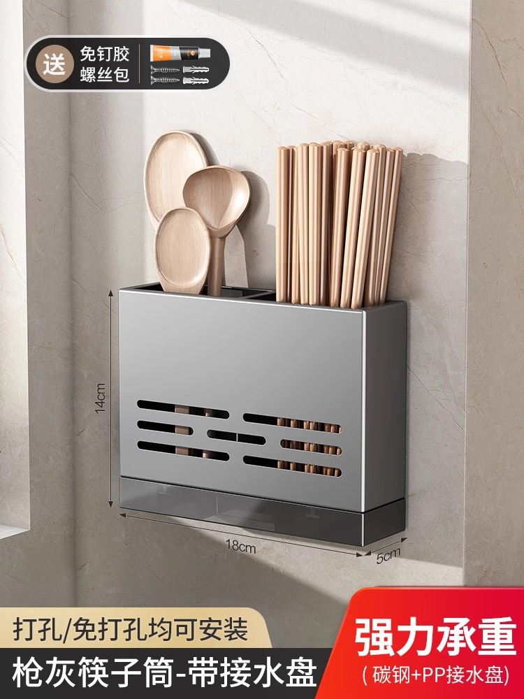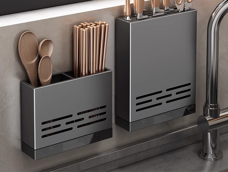• 건그레이 칼꽂이 + 젓가락통 [물받이 포함, 탈부착 가능]