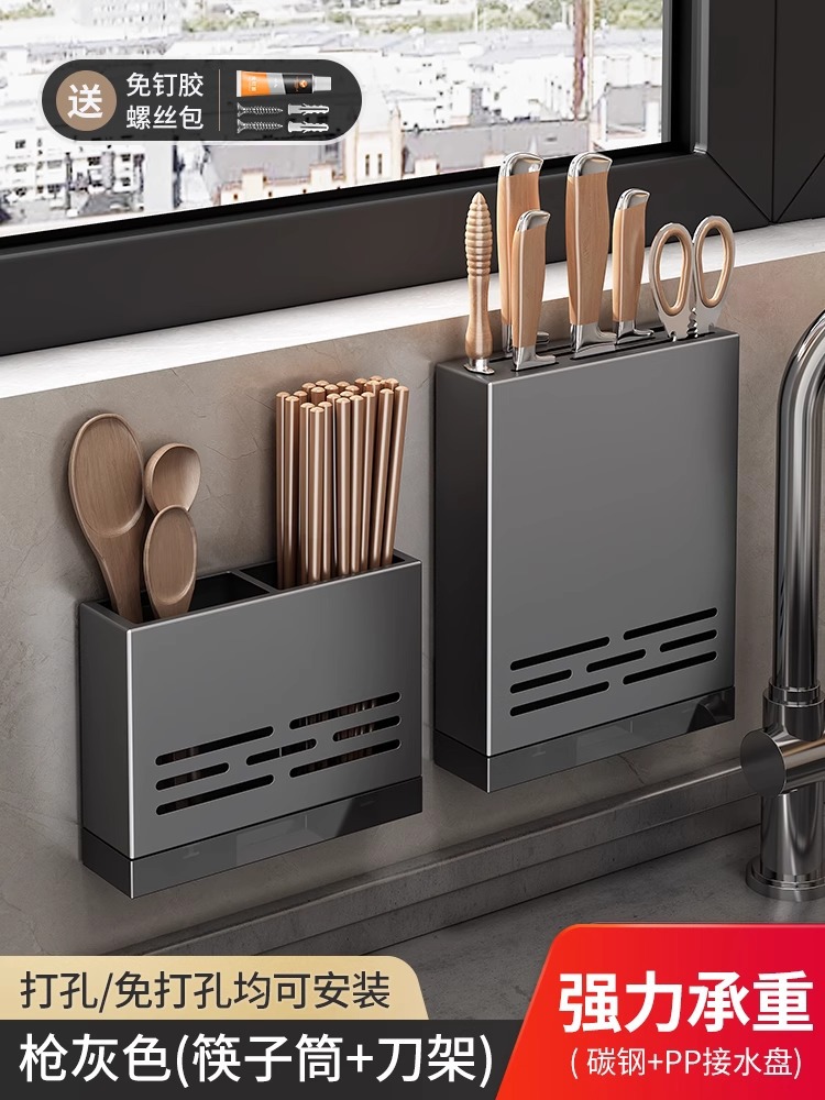 주방 칼 홀더 보관함 벽걸이 형 가정용 다기능 칼 홀더 젓가락 튜브 칼 홀더 통합 칼 보관함스토어 가기