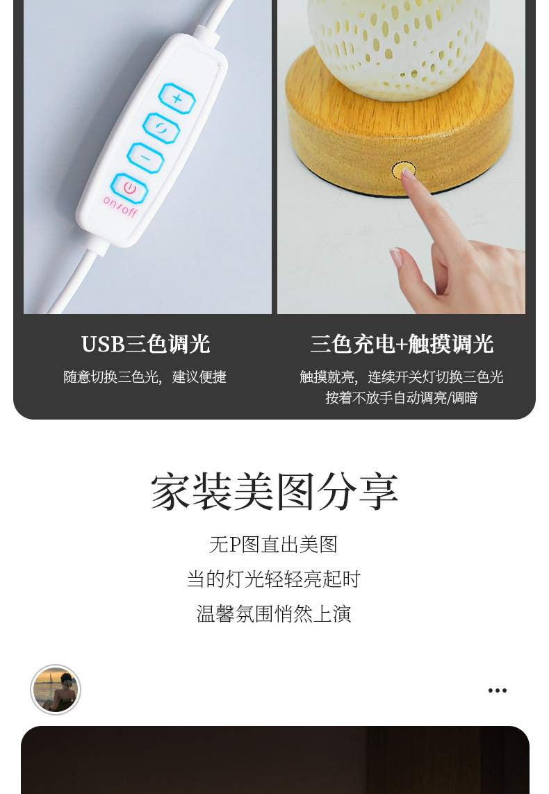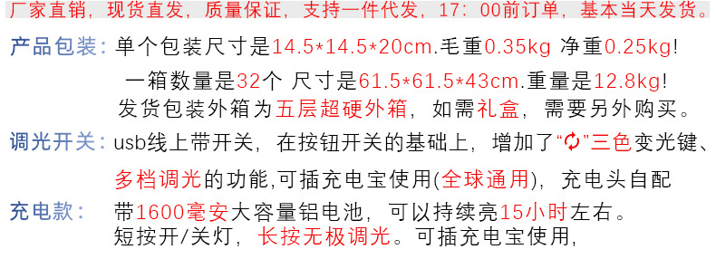 • USB [3가지 색상] 충전 + 터치 무단계 디밍
