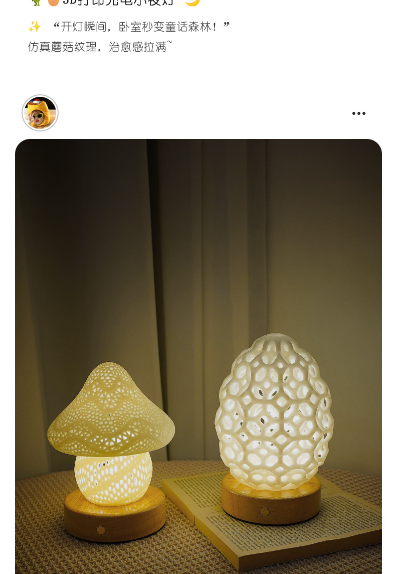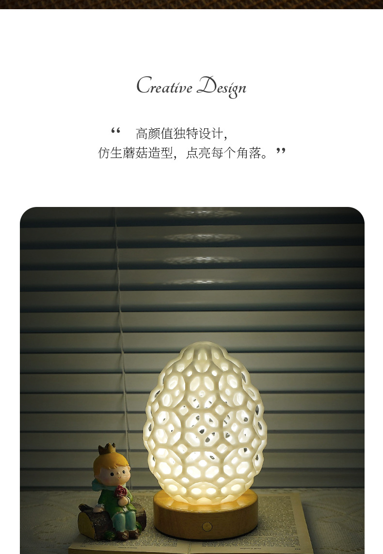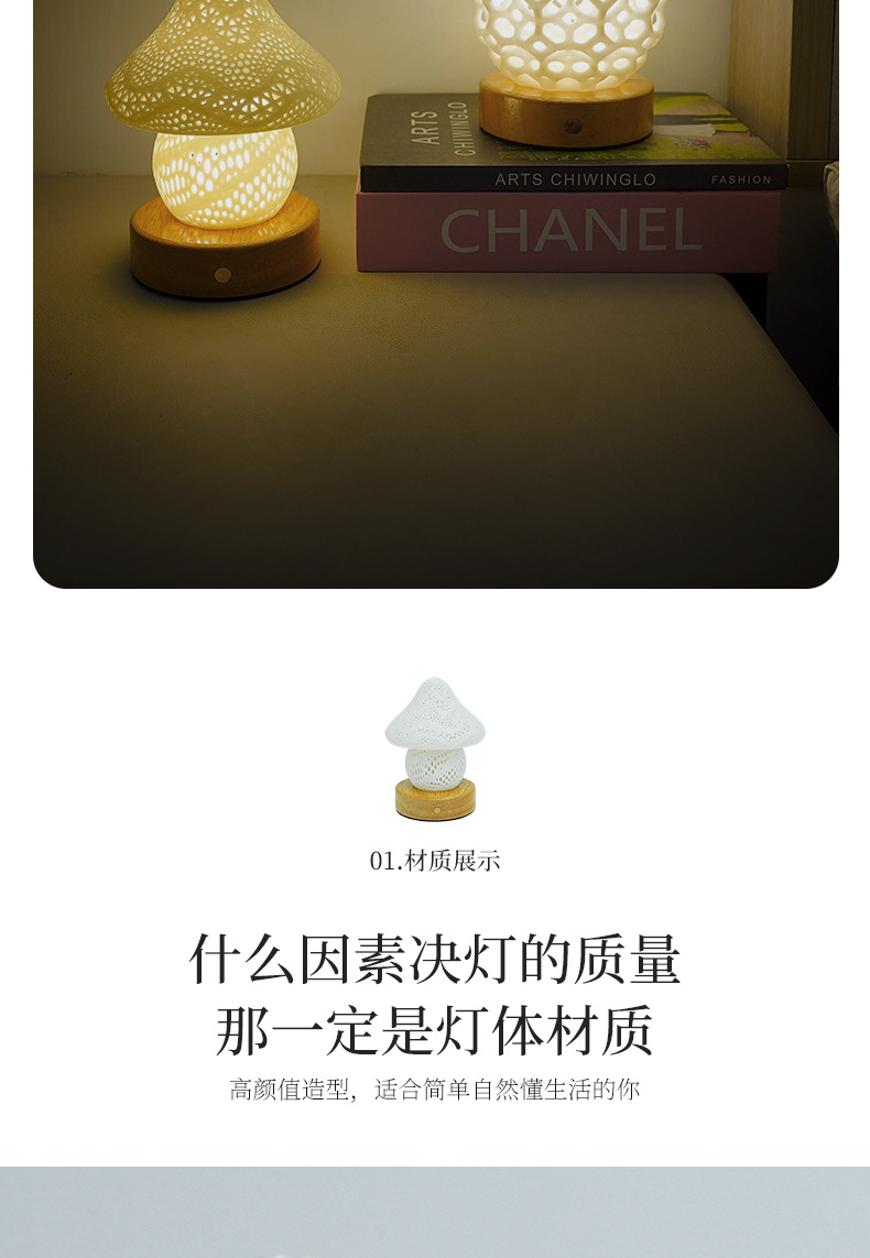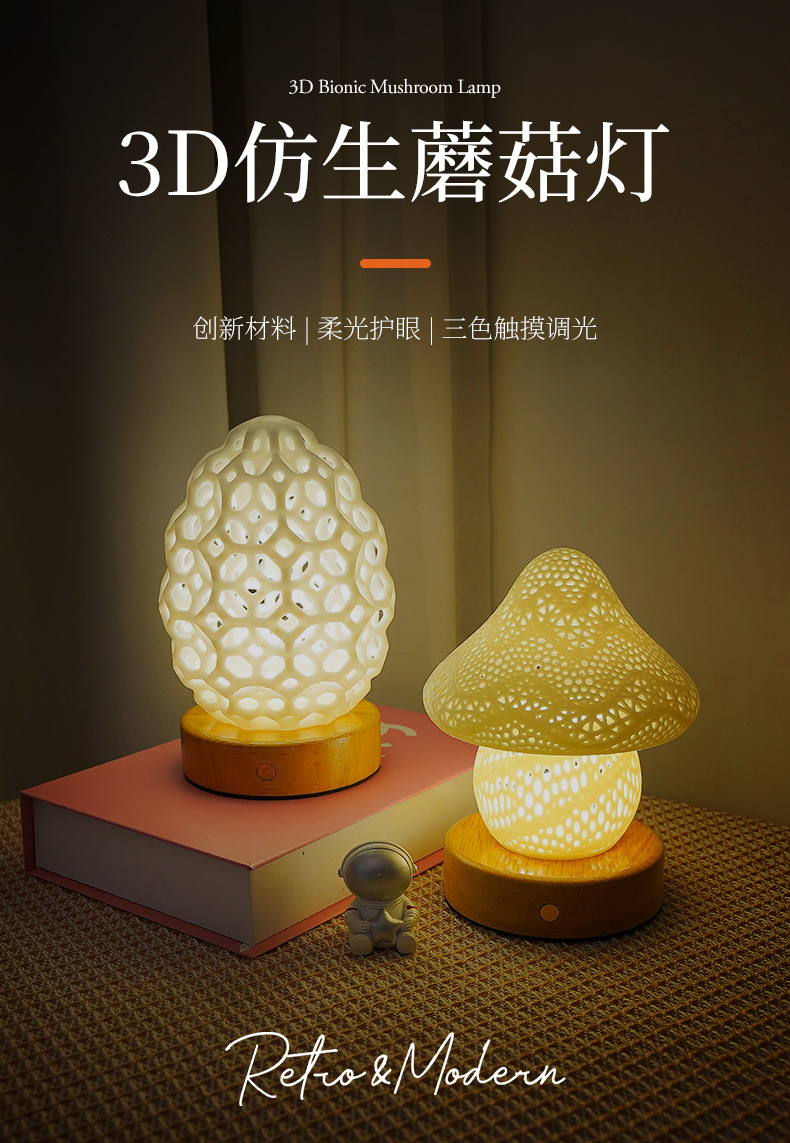 침실 머리맡 장식 테이블 램프 충전식 크림 스타일 버섯 램프 3D 인쇄 터치 디밍 야간 조명 연구