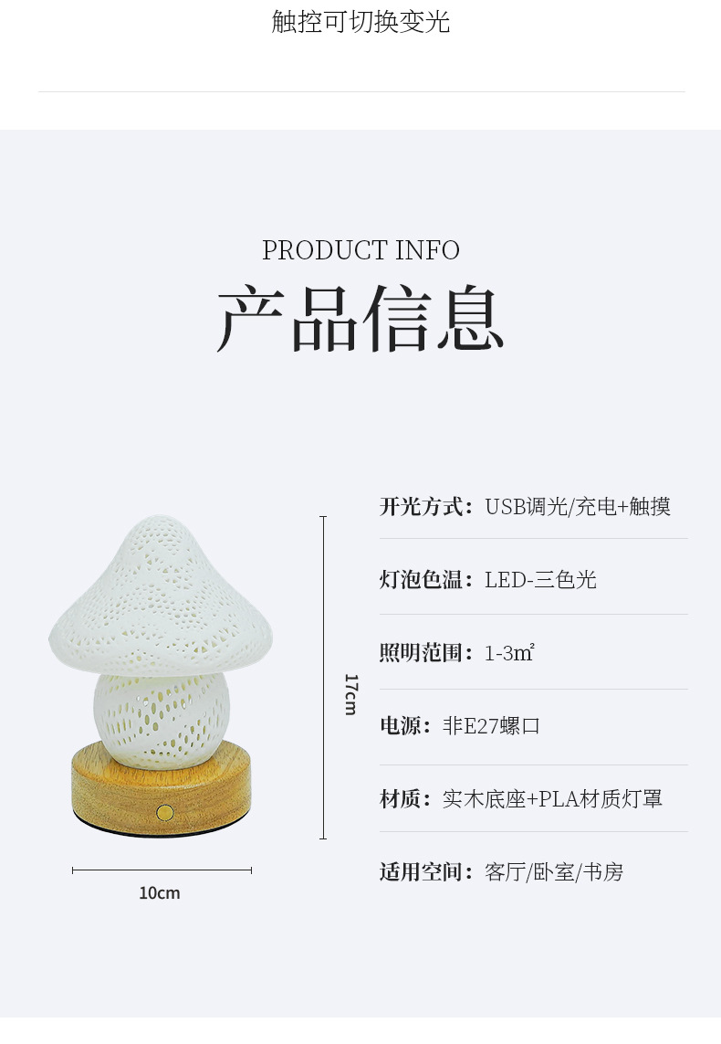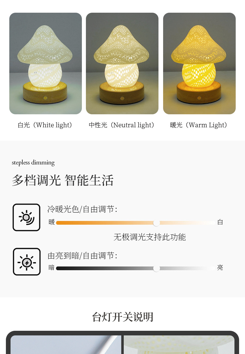 침실 머리맡 장식 테이블 램프 충전식 크림 스타일 버섯 램프 3D 인쇄 터치 디밍 야간 조명 연구스토어 가기