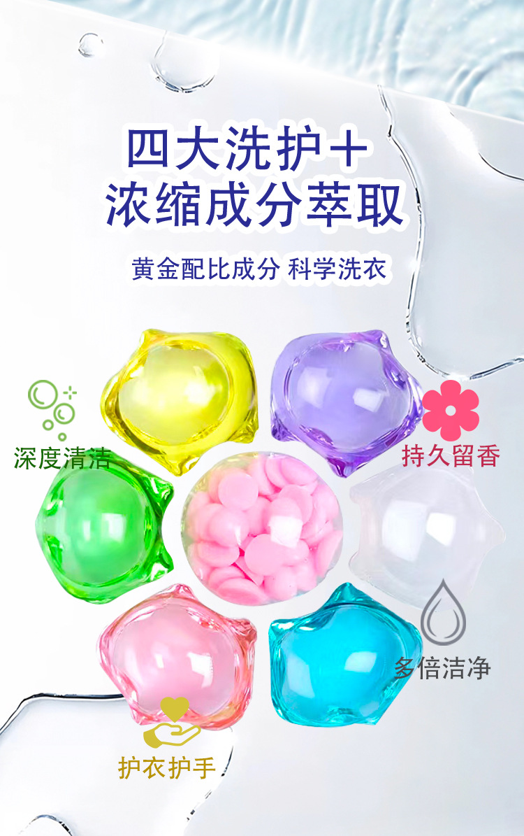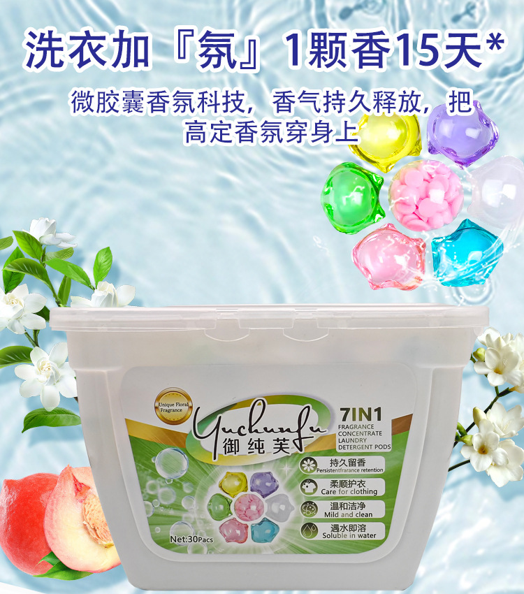 Yuchunfu 농축 7 챔버 세탁 비즈 오래 지속되는 향기 딥 클렌징 오염 제거 향기 7-in-1 세탁 볼 공장