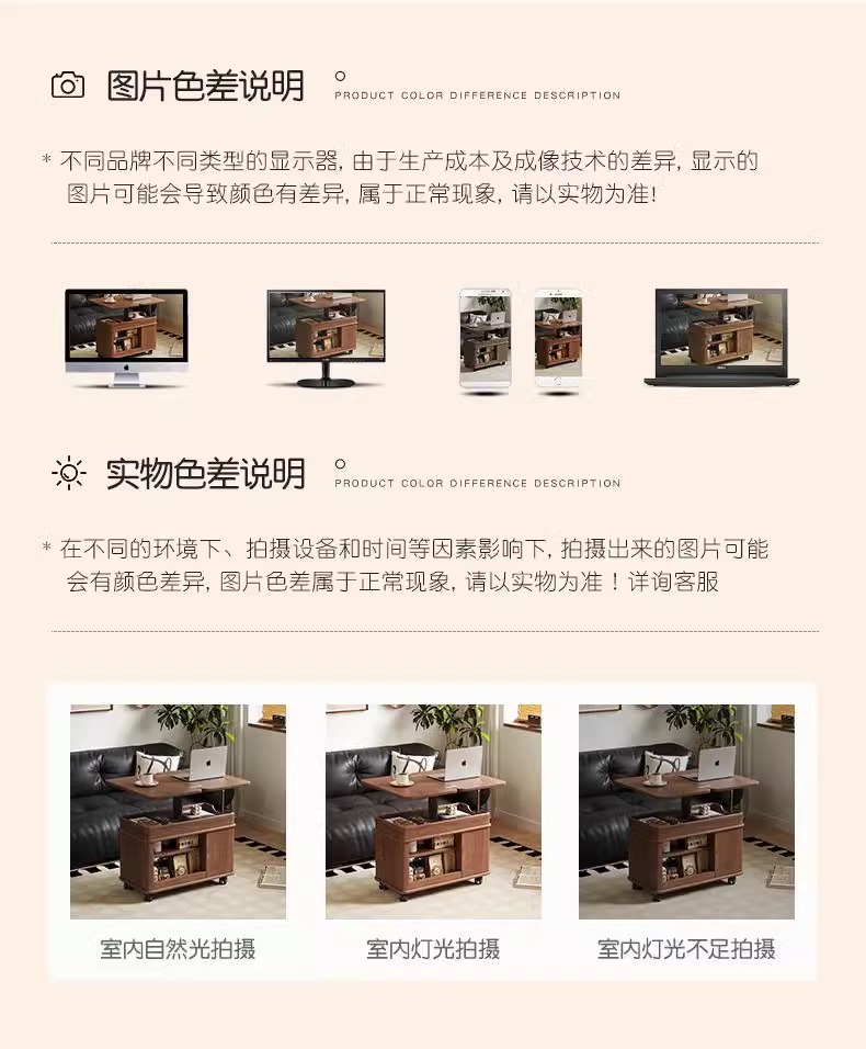전체 원목 접이식 사이드 캐비닛, 리프팅 가능한 소파 사이드 테이블, 거실 커피 테이블, 소형 아파트 이동식 다기능 트롤리스토어 가기