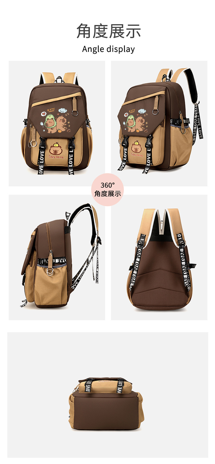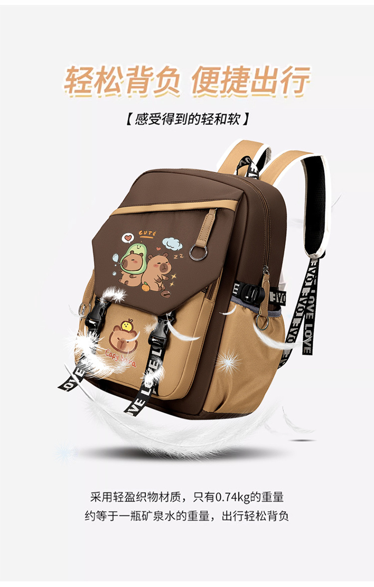 초등학생을위한 새로운 Kapibara schoolbag 소년과 소녀 경량 만화 Kapibara 대용량 척추 보호 어린이 배낭