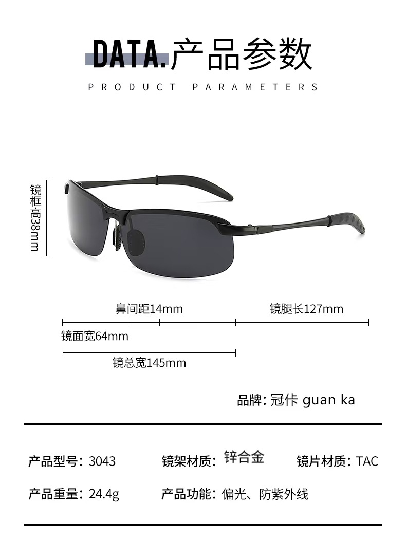 광변색 선글라스 3043 남성용 운전자 야간 투시경 편광 선글라스 주야간 운전용 특수 낚시 안경