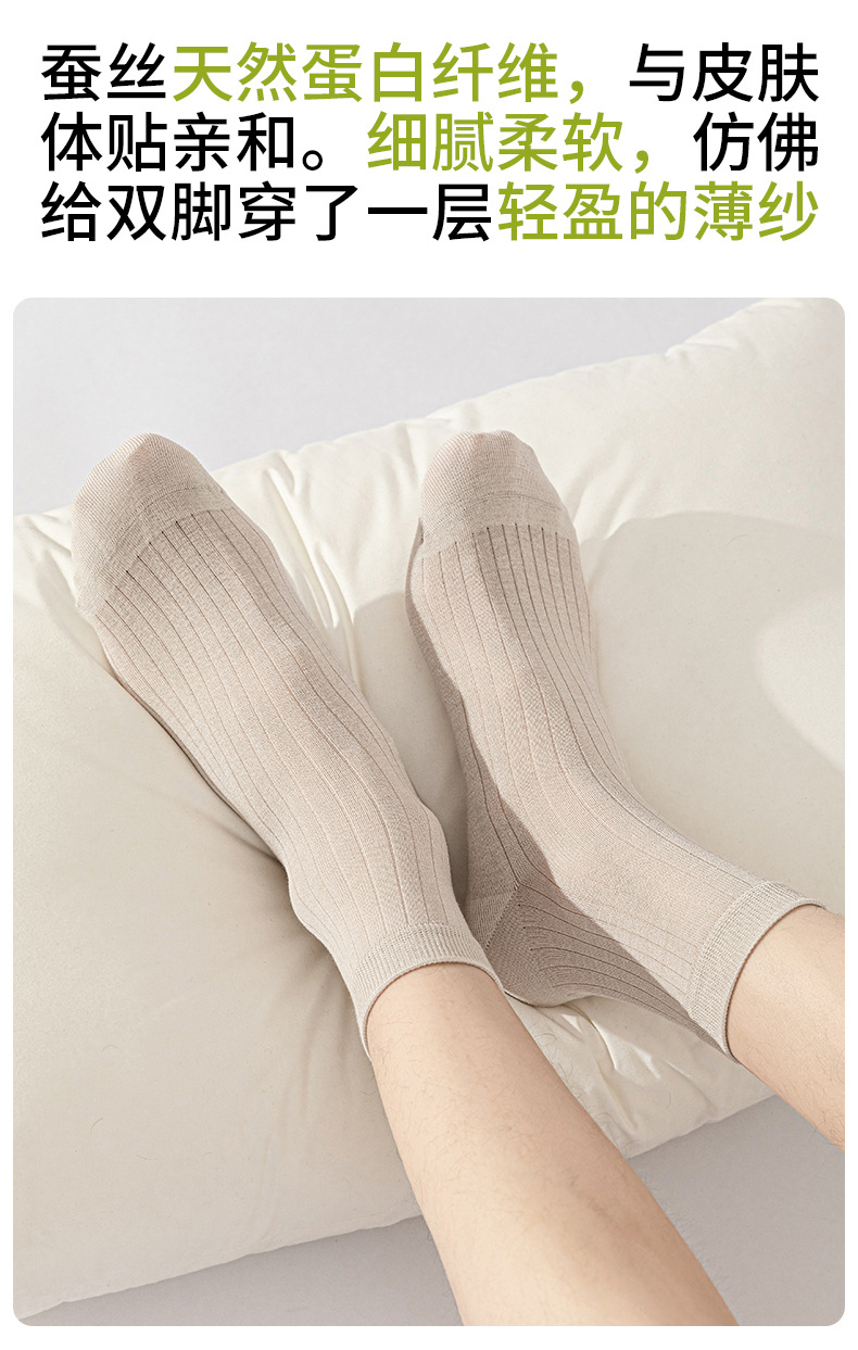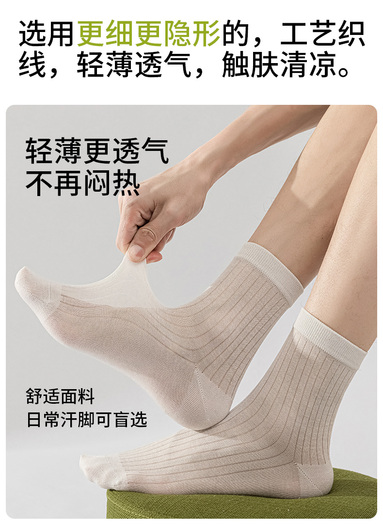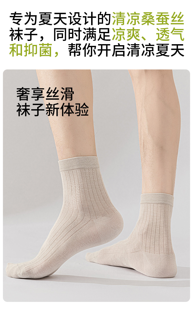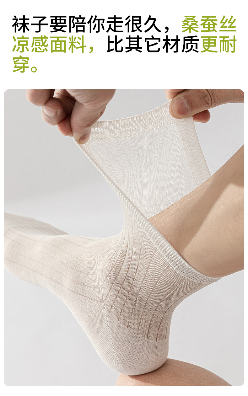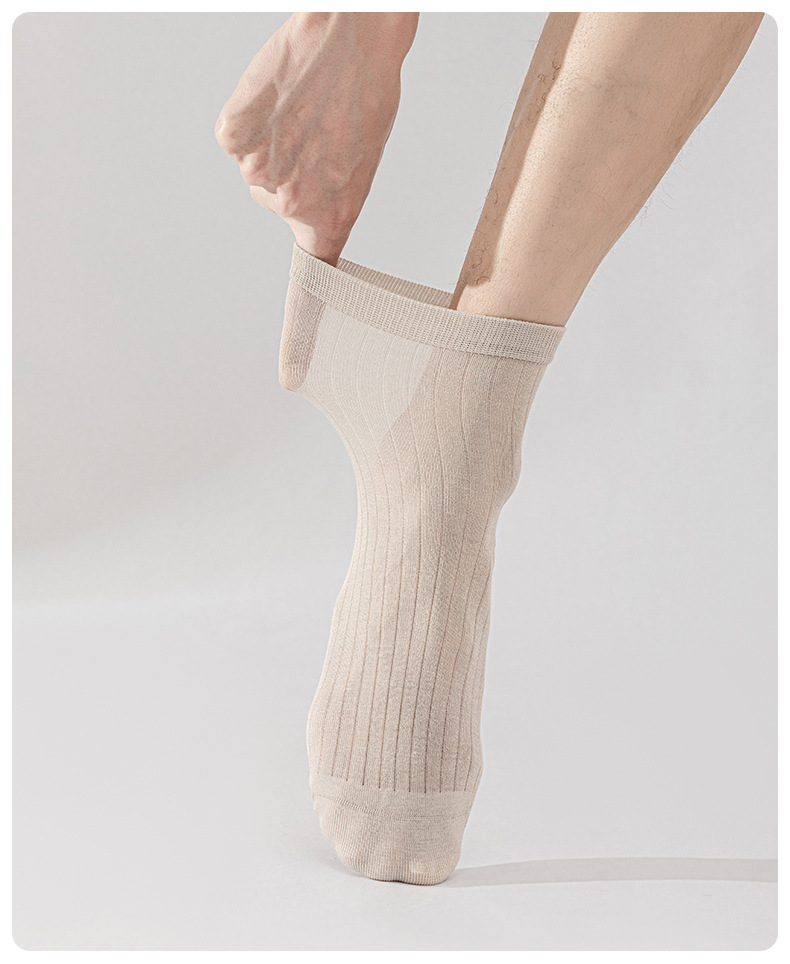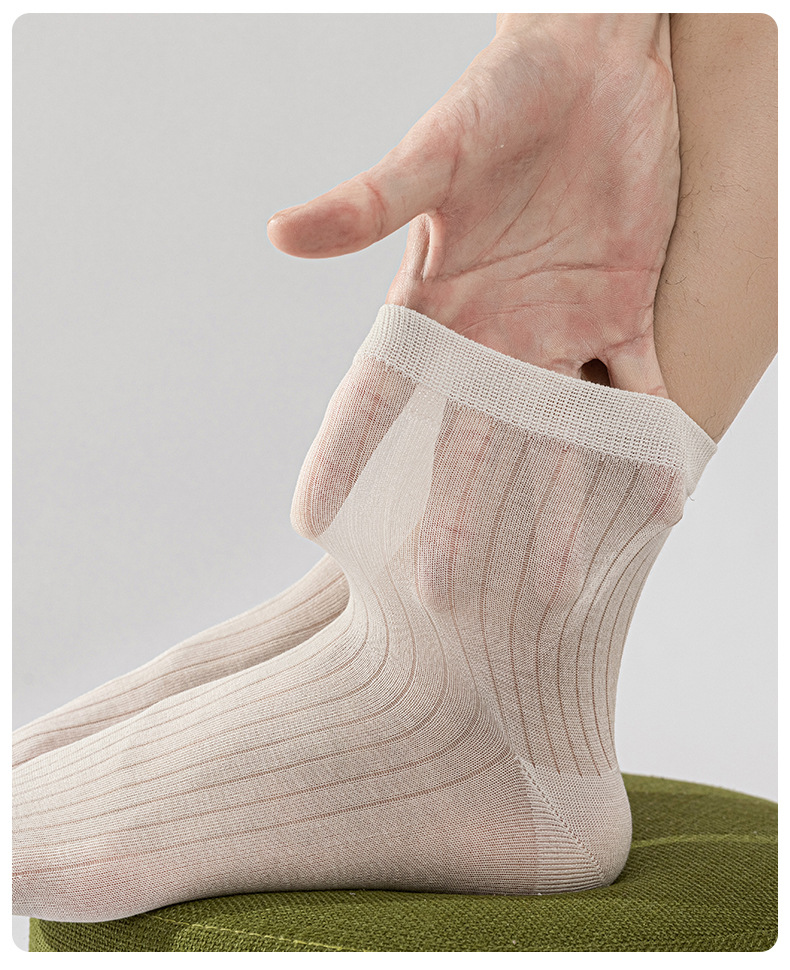 남성용 시원한 느낌의 끈끈이 실크 양말, 세로 줄무늬 중목 양말, 여름용 얇은 냄새 방지 및 땀 흡수 기능, 남성 비즈니스용 무봉제 양말스토어 가기