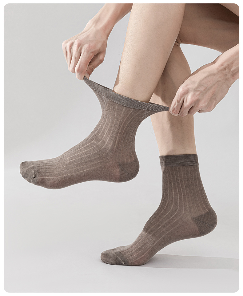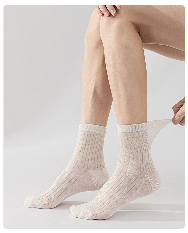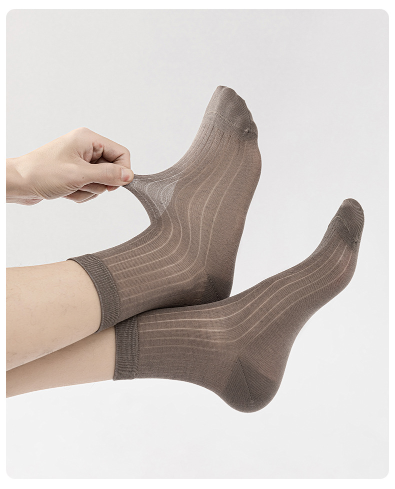 남성용 시원한 느낌의 끈끈이 실크 양말, 세로 줄무늬 중목 양말, 여름용 얇은 냄새 방지 및 땀 흡수 기능, 남성 비즈니스용 무봉제 양말