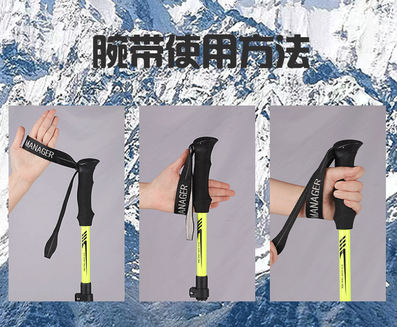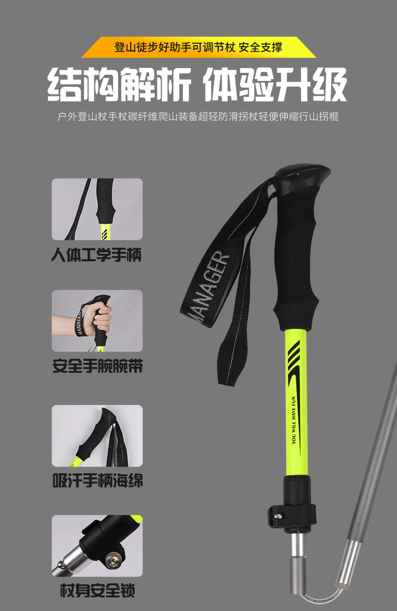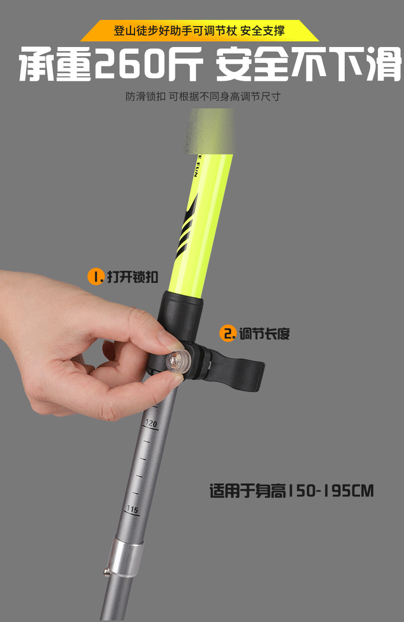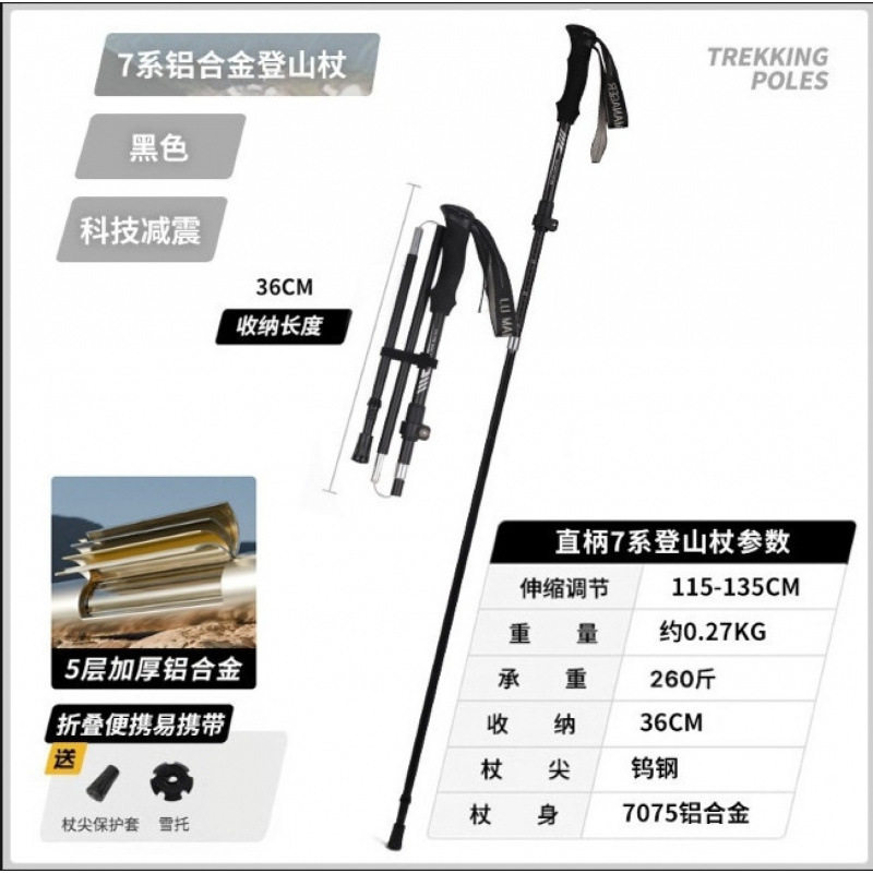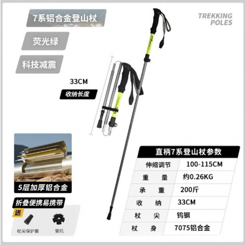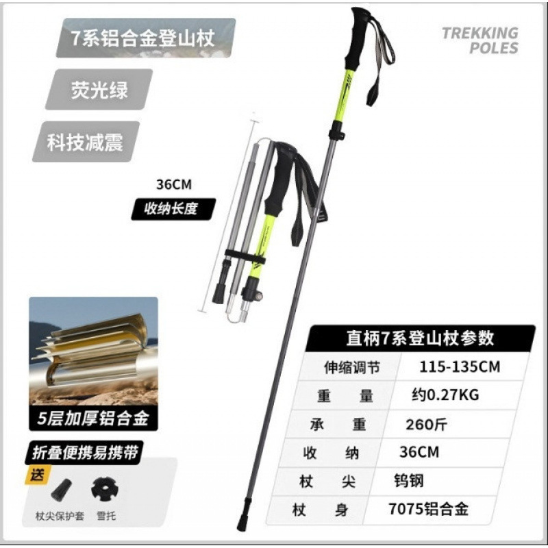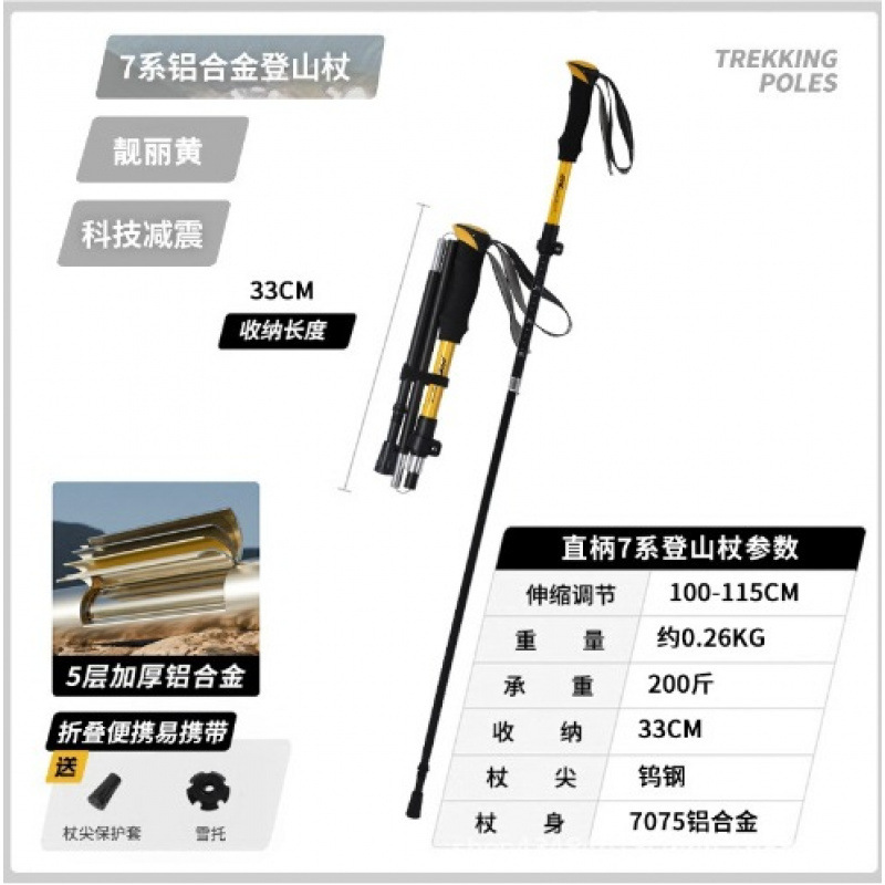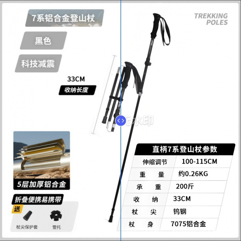 야외 하이킹 및 등산 알루미늄 합금 휴대용 초경량 보관 접이식 하이킹 스틱 워킹 스틱