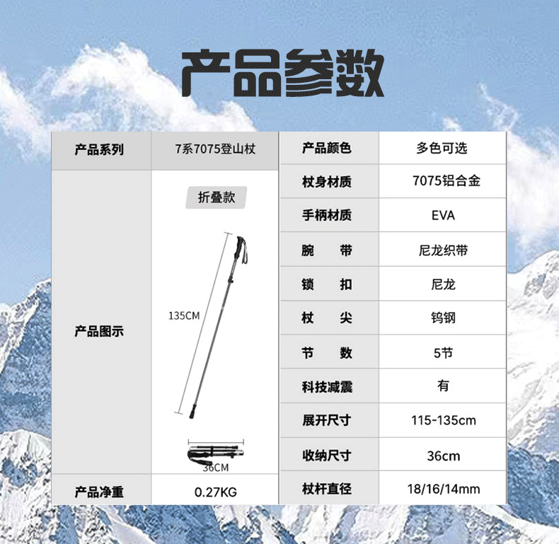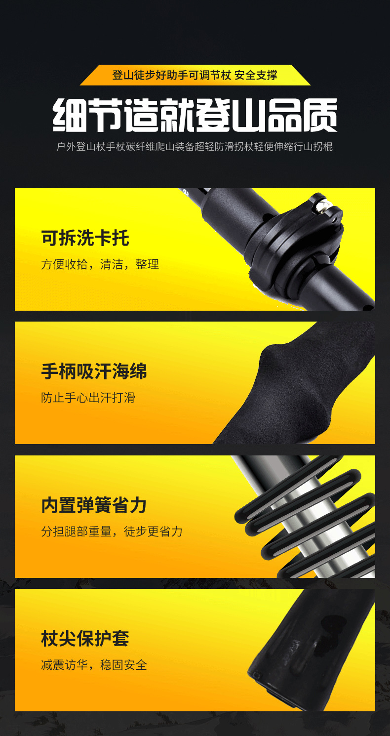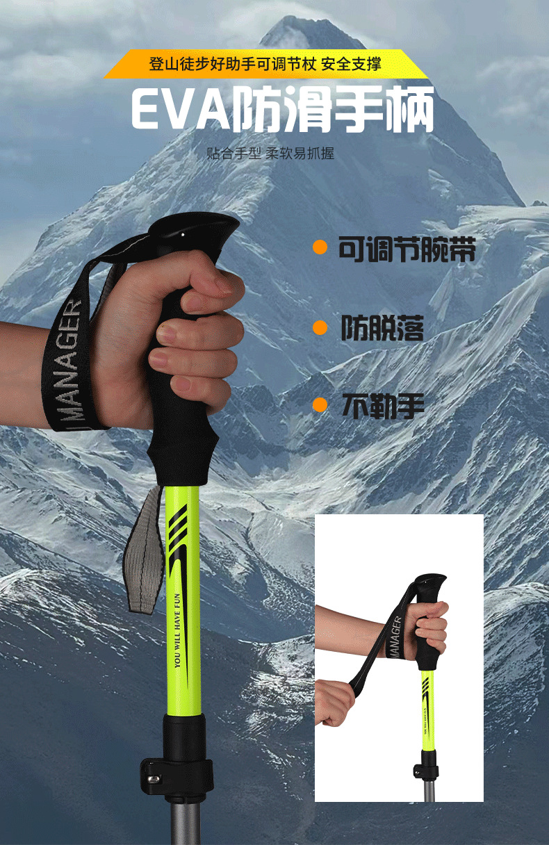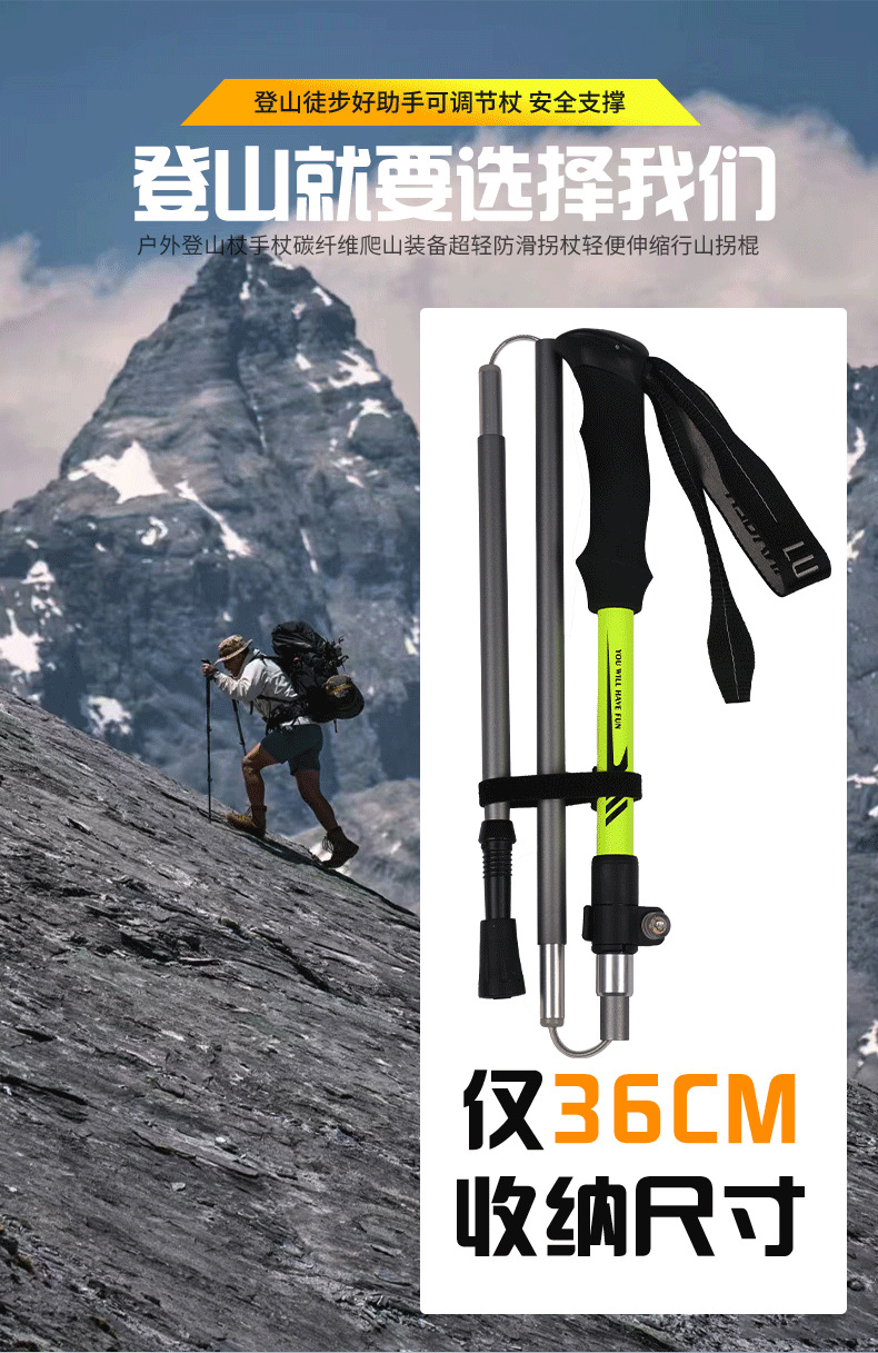 야외 하이킹 및 등산 알루미늄 합금 휴대용 초경량 보관 접이식 하이킹 스틱 워킹 스틱스토어 가기