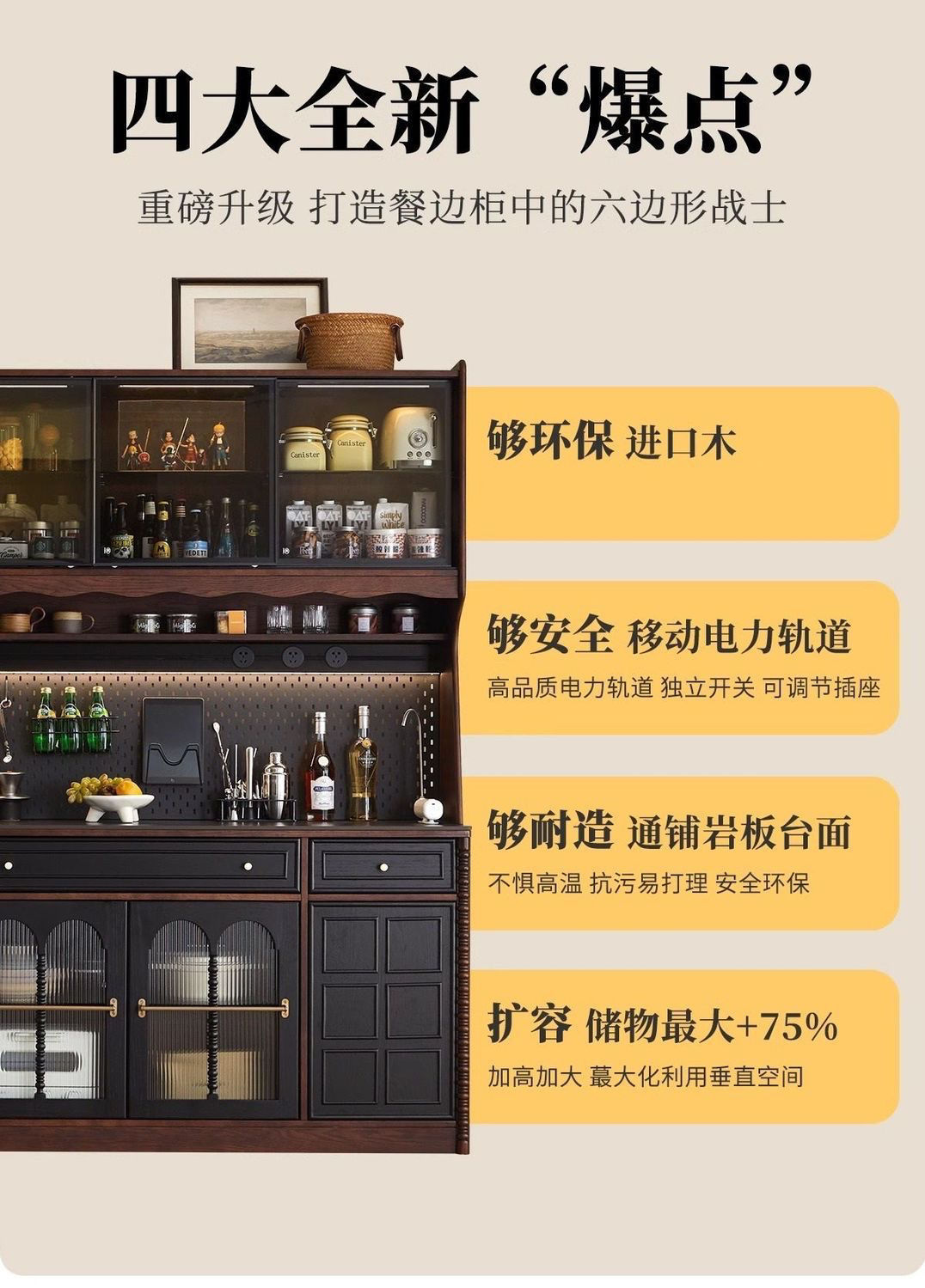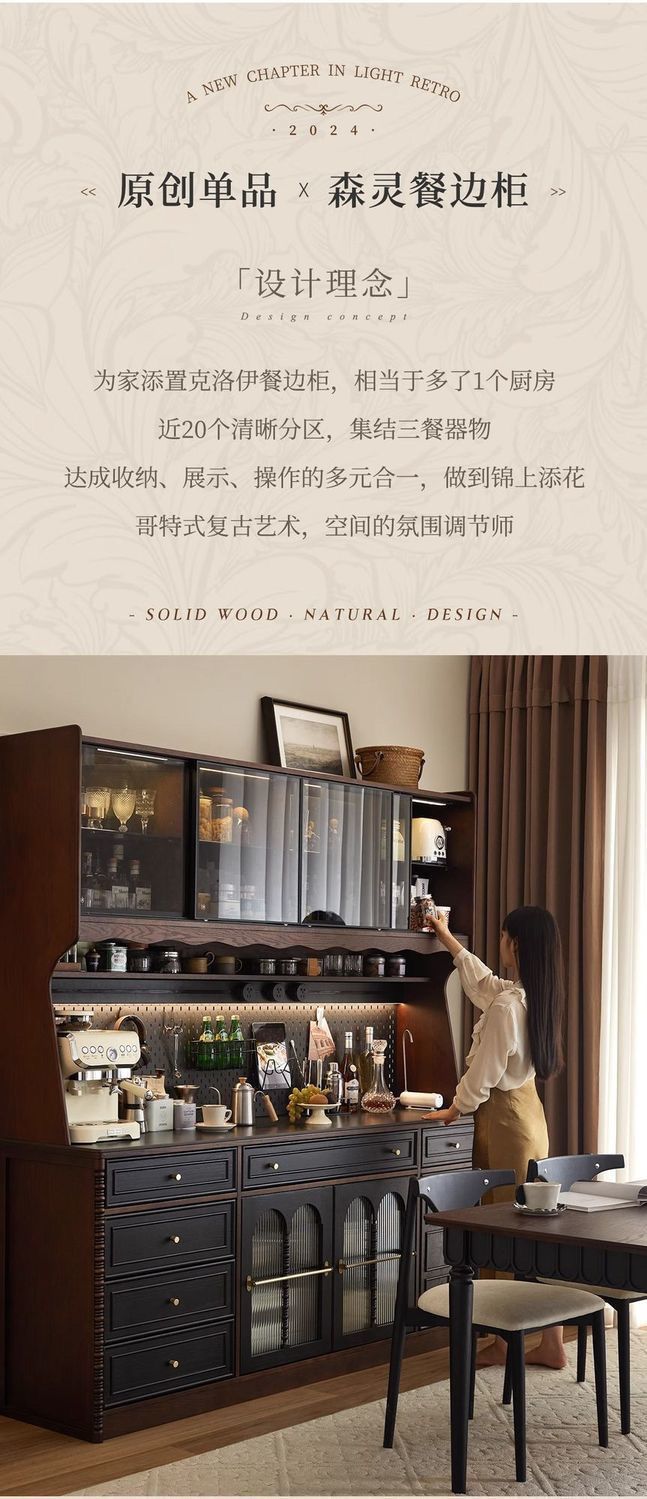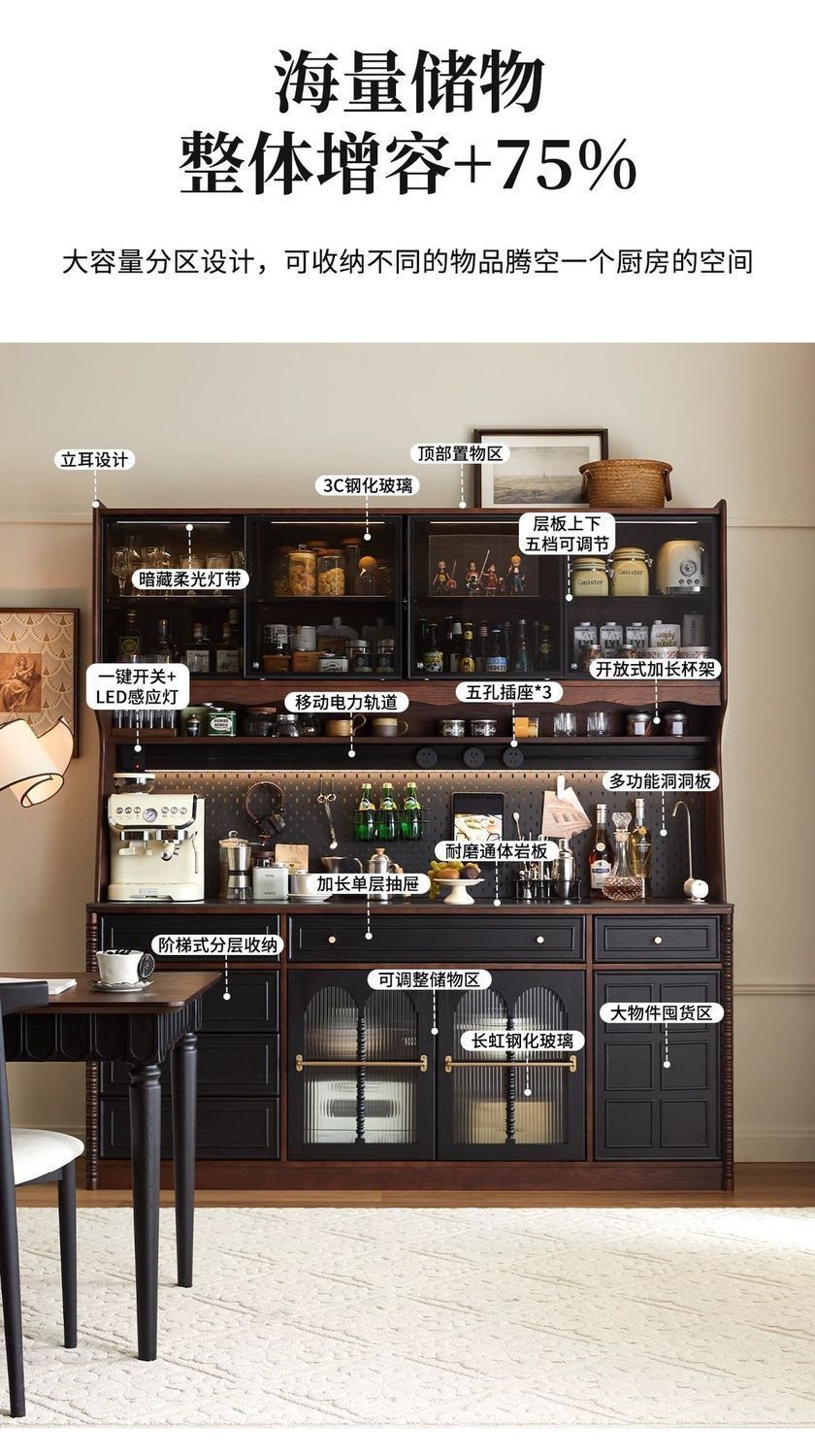 북유럽 중세 식당 복고풍 간단한 수납 프랑스 단단한 나무 거실 벽 일체형 와인 캐비닛 차 주방 커피