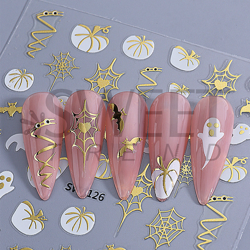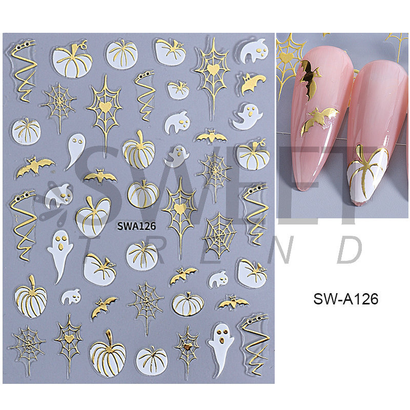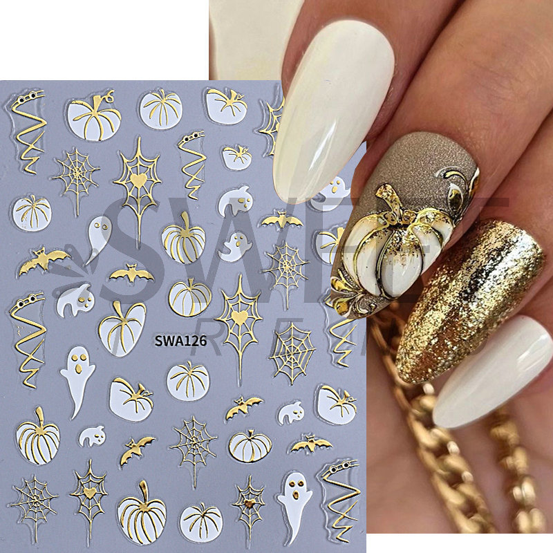 국경 간 새로운 할로윈 네일 아트 스티커 ins 핫 스탬핑 실버 호박 거미 귀여운 유령 잎 네일 데칼스토어 가기