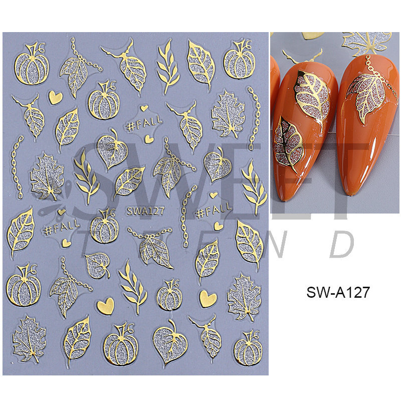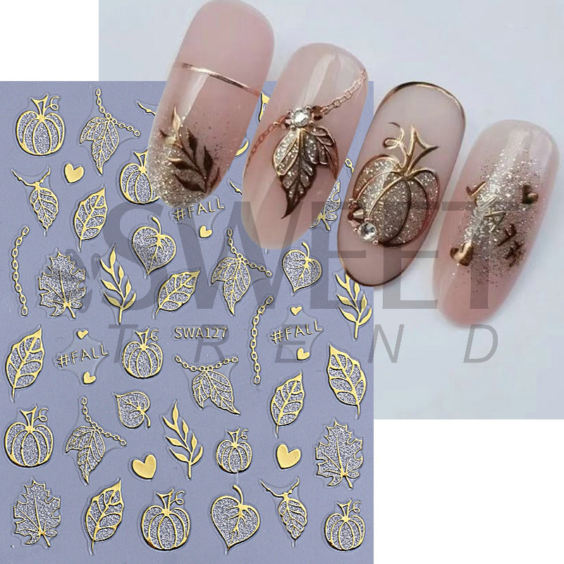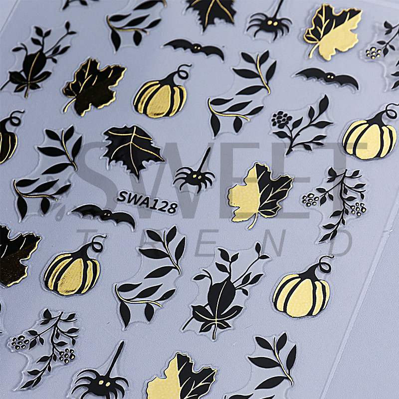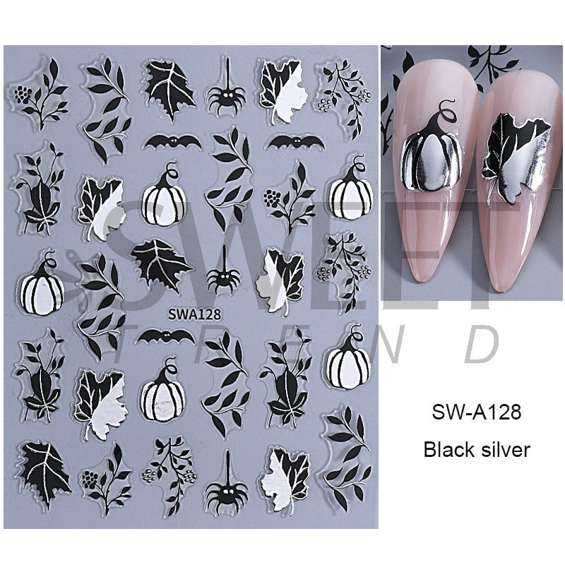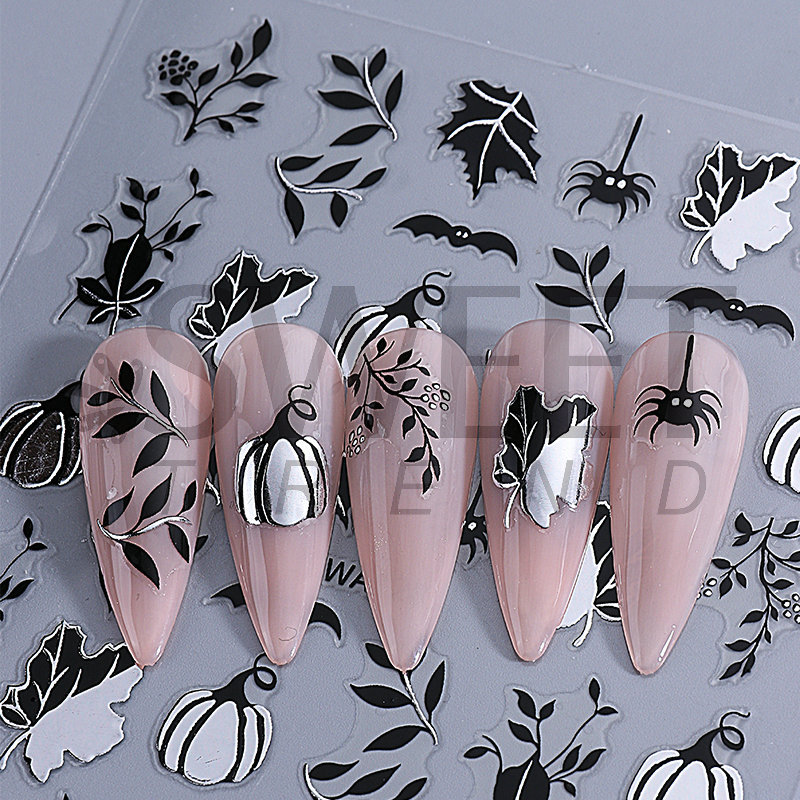 국경 간 새로운 할로윈 네일 아트 스티커 ins 핫 스탬핑 실버 호박 거미 귀여운 유령 잎 네일 데칼