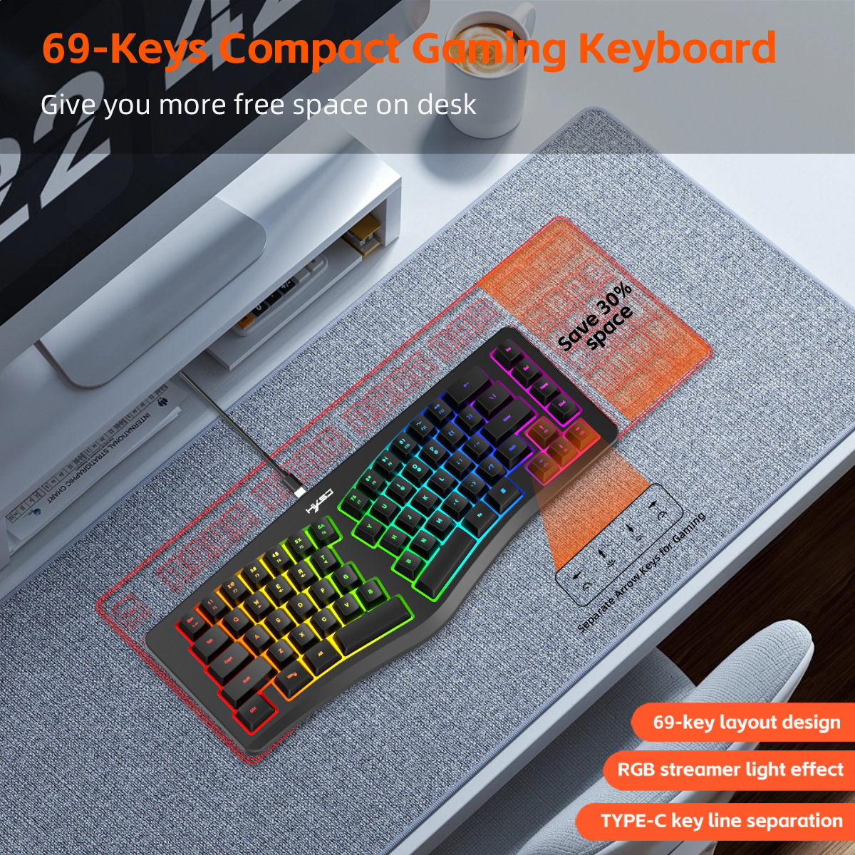 1. 69-key ergonomic layout – compact, space-saving, and comfortable.
