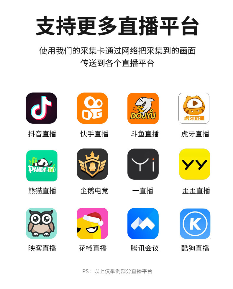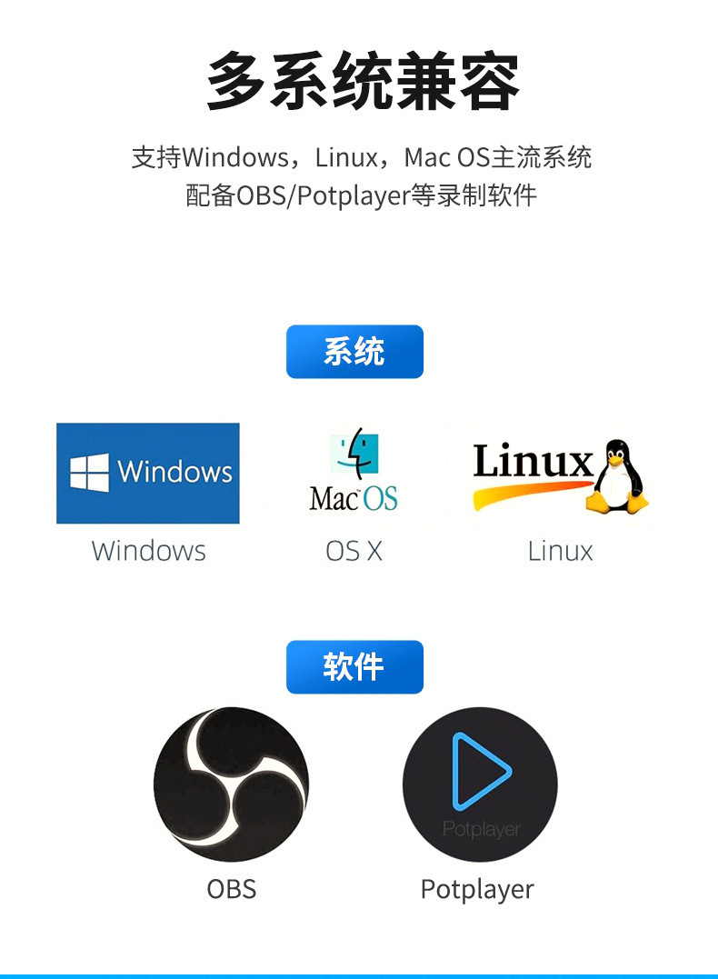 * Support most acquisition software, such as VLC, OBS, Amcap, etc.;