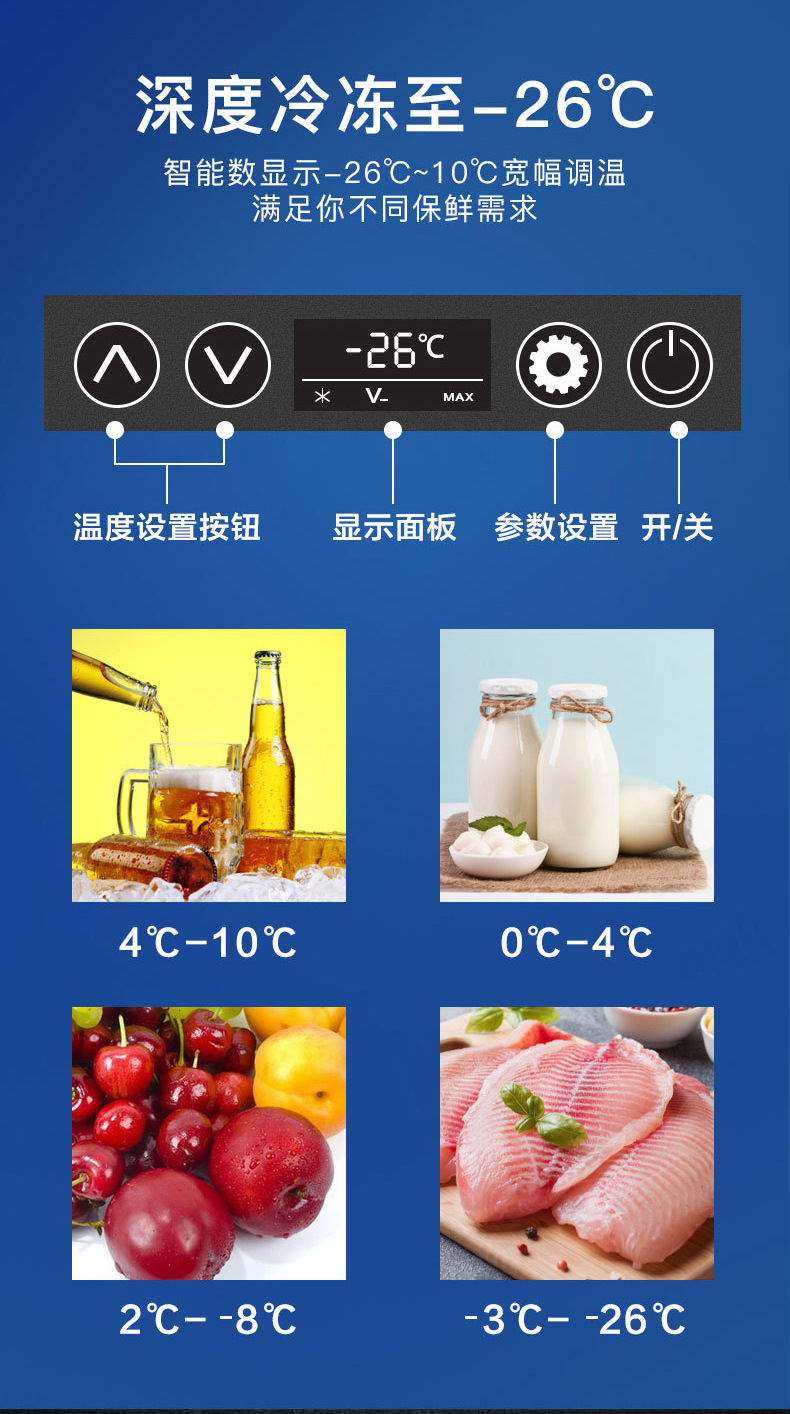 국경 간 핫 세일-26 ℃ 깊은 냉동 자동차 냉장고 12V24V 압축기 급속 냉동 야외 소형 냉장고