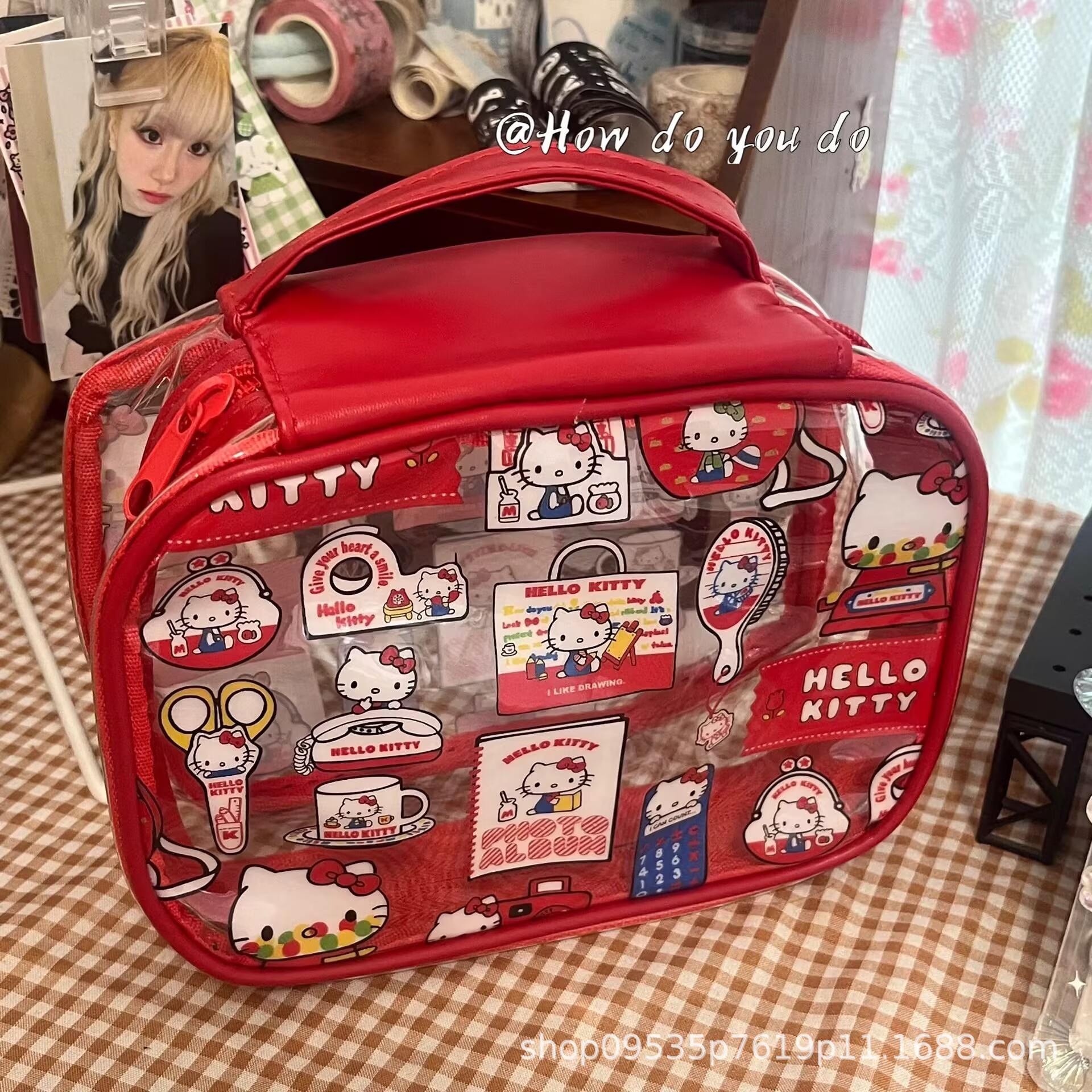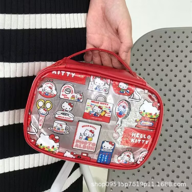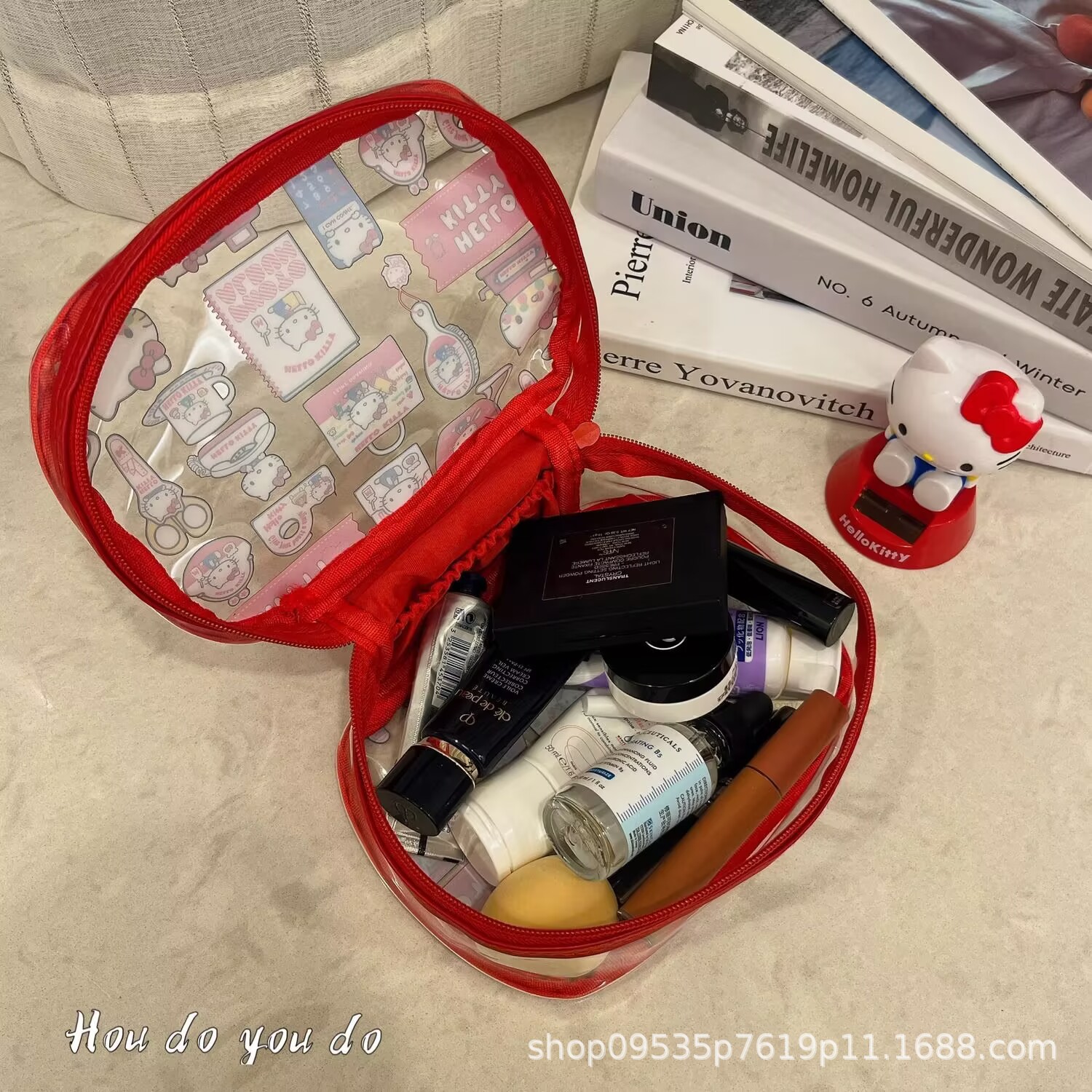 만화 PVC 투명 kt 화장품 가방 휴대용 대용량 방수 스킨 케어 보관 가방 여행 휴대용 보관 세면 용품스토어 가기
