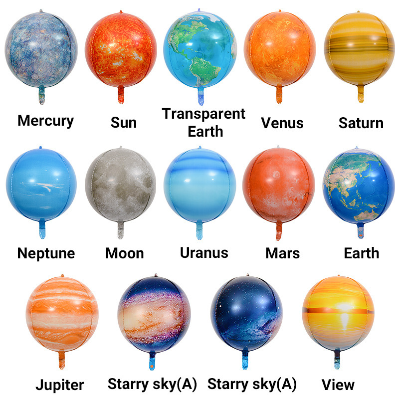 국경 간 22인치 4D 알루미늄 필름 풍선 별이 빛나는 하늘 테마 태양 달 우주 행성 시스템 장면 레이아웃 독립 포장