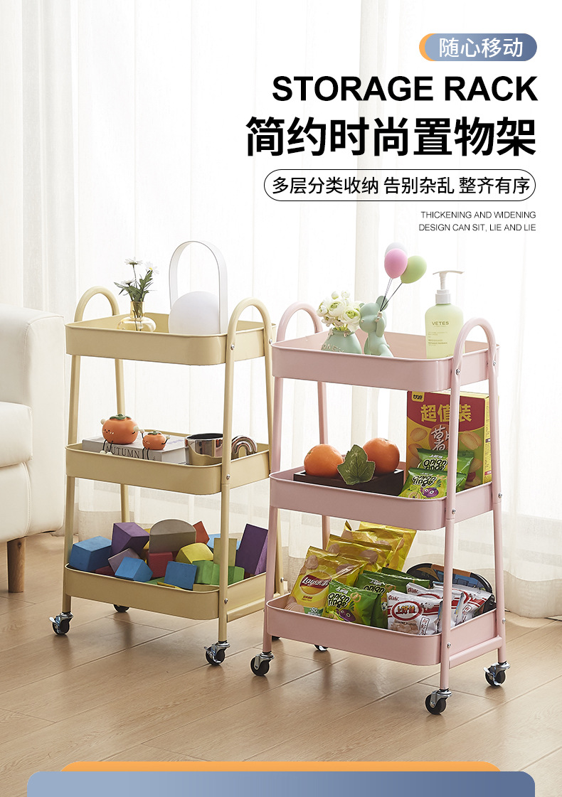 트롤리 보관 랙 바닥 주방 침실 욕실 모바일 다층 침실 머리맡 보관 보관 랙 국경 간스토어 가기