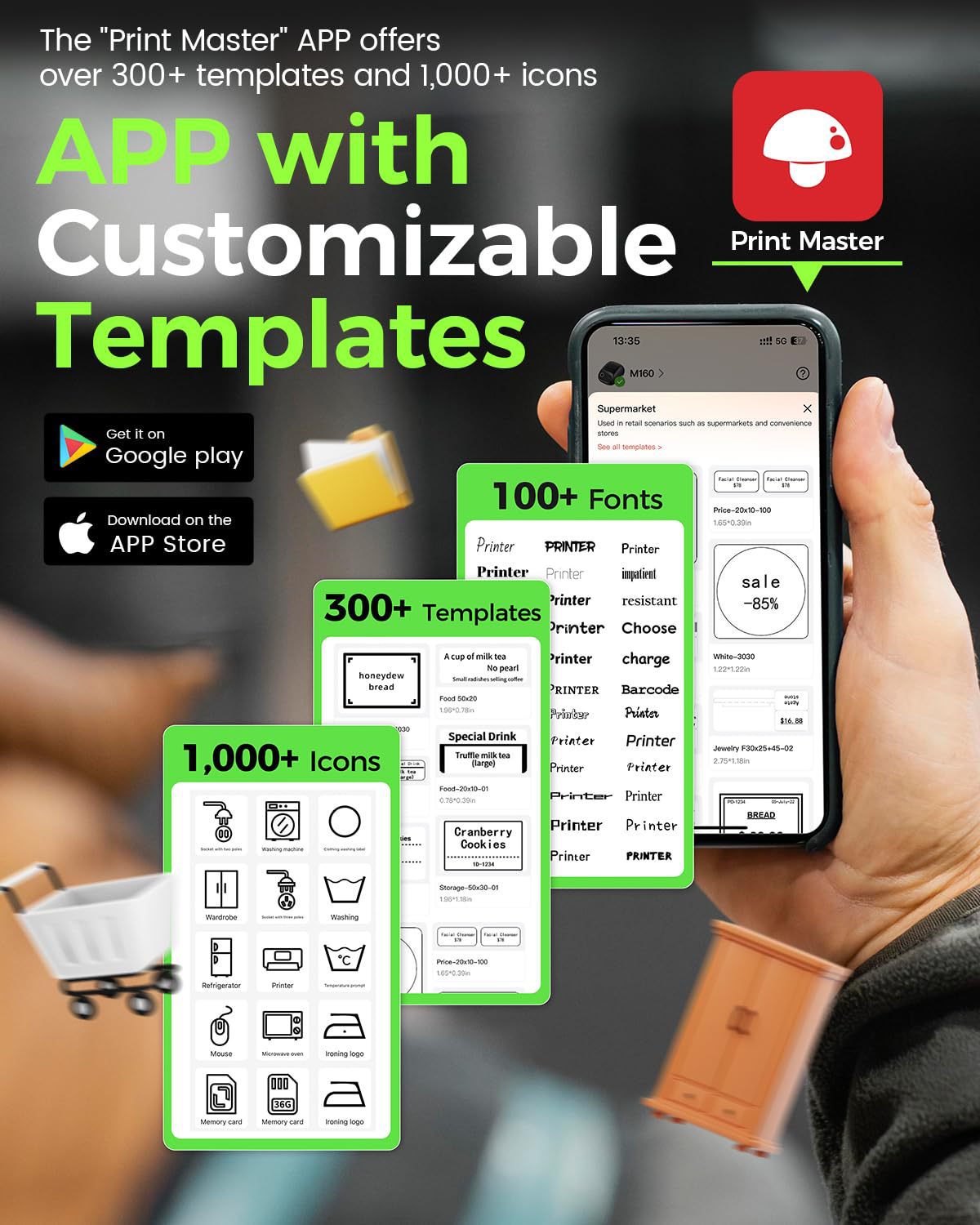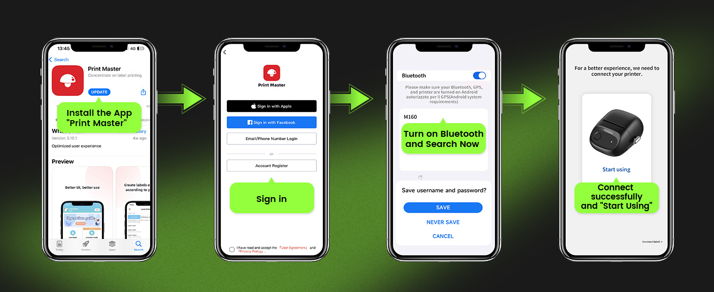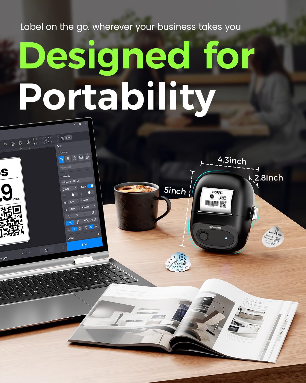 M160 가격 라벨 프린터는 휴대폰에 연결할 수 있습니다. 상업용 Bluetooth 무잉크 자체 접착 열전사 프린터 소형스토어 가기