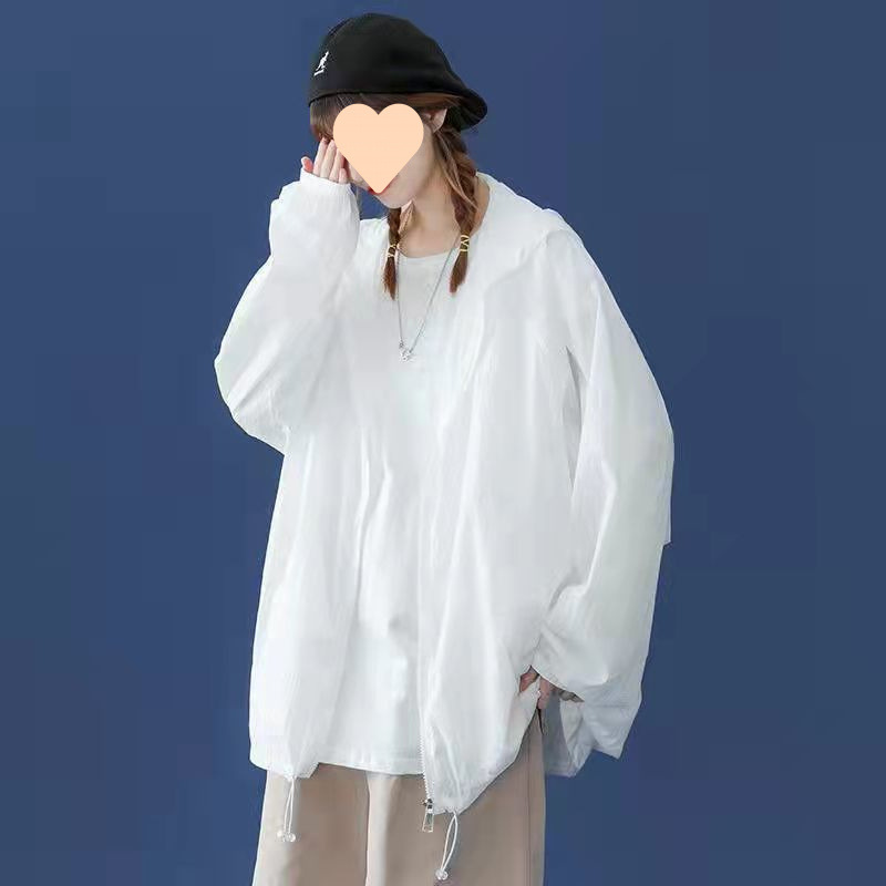 여성을 위한 멋진 회색 태양 보호 의류 2025 새로운 여름 느슨하고 다재다능한 얇은 후드 야외 태양 보호 의류 재킷스토어 가기