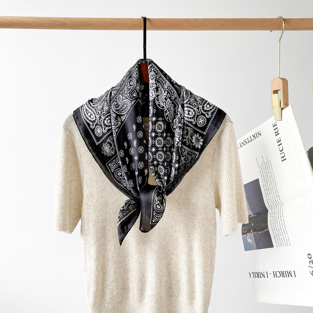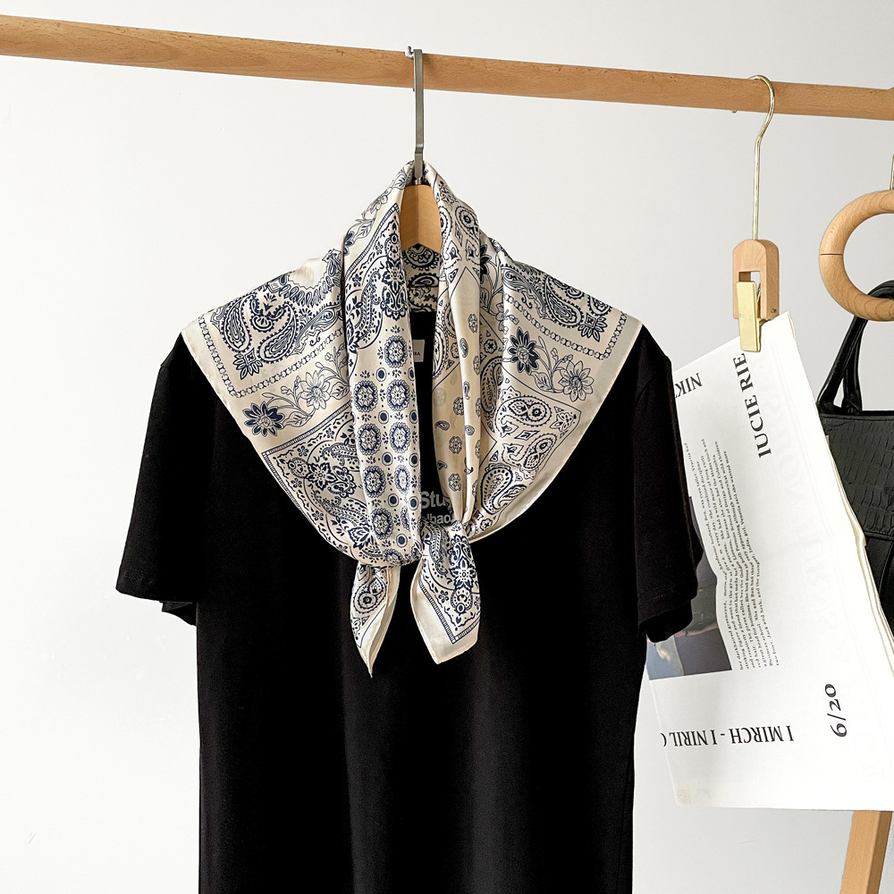 70 레트로 캐슈 꽃 스카프, 고급 패션 장식 스카프, 히잡, 트렌디한 매칭 아이템, 소형 스카프 도매스토어 가기