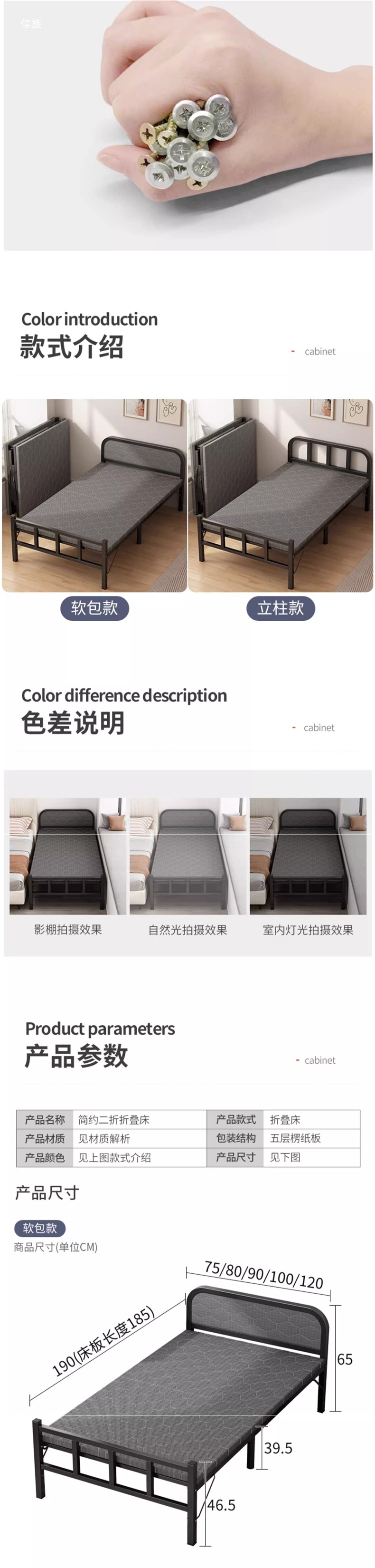1인용 접이식 침대, 간이 침대 1.2m 강화 낮잠용 유아용 침대, 성인용 사무실 단단한 철제 침대스토어 가기