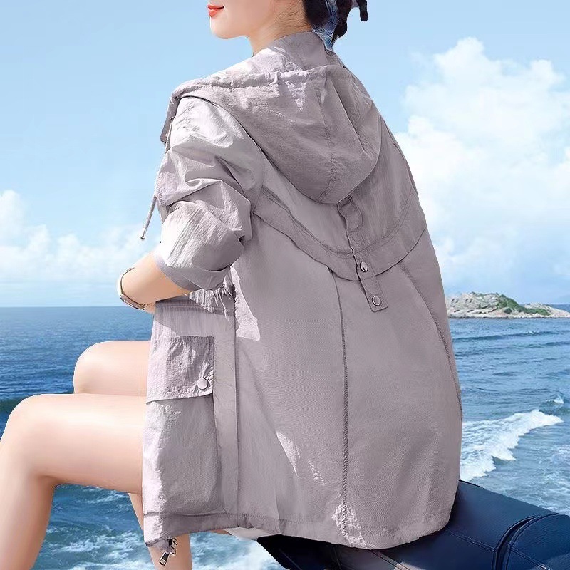 후드가 달린 여성용 얇은 짧은 코트 2025 새로운 여름 스타일 통기성 다목적 외국 스타일 태양 보호 의류스토어 가기